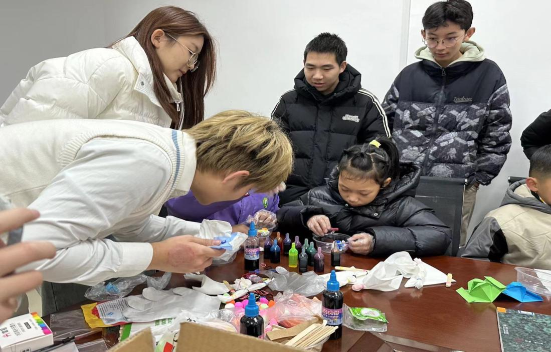 在授课过程中,成员们组织完成了“彩虹泡泡龙”“魔术牛奶”“油水烟花”等一系列科学实验,将枯燥的理论转化为生动的实践,点燃了孩子们的科学学习兴趣,培养了其深度思考的习惯。为提升孩子们的动手能力,团队设置并教授了“折纸嘴唇”“创意剪裁窗花”等手工课程,在生动有趣的手工实践中充分激发了孩子们的想象力和创造力。此外,支教队还精心组织了“景泰蓝彩绘”“彩色扎染”等特色美育课堂活动,提升了孩子们的传统审美修养,促使其在潜移默化中增强传承优秀传统文化的自觉意识。