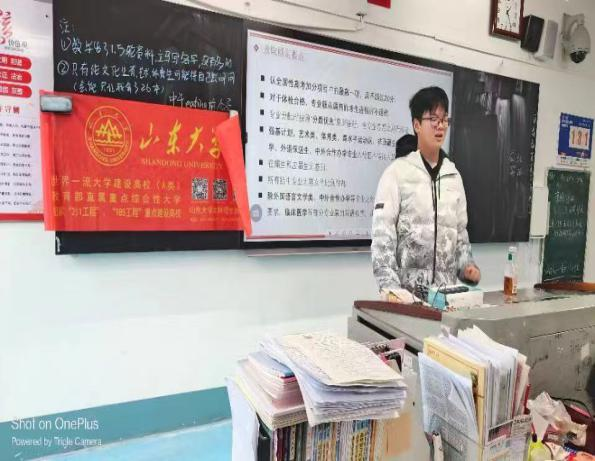 线下实践活动时,老湘队队员向同学们介绍了BEAT365英国官网网站的历史文化、综合实力、人才培育体系与学校招生政策等内容,并结合亲身经历讲述山大丰富多彩的校园生活。同时,队员们表达了对母校悉心培养的感谢和对同学们学习生活的关心,并将自己的学习心得予以分享。在答疑解惑阶段,队员们积极耐心地为同学们解答相关问题。在征求建议阶段,部分员工与老师提出丰富表现形式、加强沟通能力等建议。实践队伍认真听取建议,不断改进宣讲方式,力求以更加生动有趣、引人入胜的方式进行宣传,从而充分完整地介绍相关信息,增进当地学子对山大的认识。