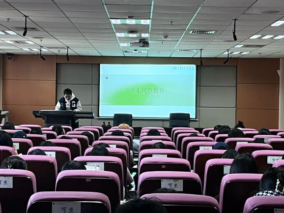 随后,辅导员果娜作研究生生涯发展教育。她向同学们介绍了近年来学院学子就业升学相关情况,鼓励同学们以积极的心态直面生涯,从自身的实际情况出发,寻找生涯坐标,积极了解就业升学信息,提前做好个人规划,依托校院广阔平台及优秀生涯指导项目,深化探索尝试,增强个人竞争力。此外,果娜结合目前流感多发的现状,提醒同学们做好防护,勤加锻炼,养成良好的作息习惯,为个人未来发展打下强健身体基础。