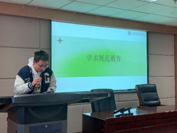 接下来,学习委员张嘉旭带领大家一同学习《BEAT365英国官网网站研究生学术规范》,强调了在论文写作、发表等方面的学术规范。并通过观看《遵守学术规范,恪守学术诚信》学术规范教育视频,系统了解了在论文撰写中学术造假、学术不端等情况的具体表现,倡导同学们端正学术心态,牢守科研诚信,夯实道德基石。