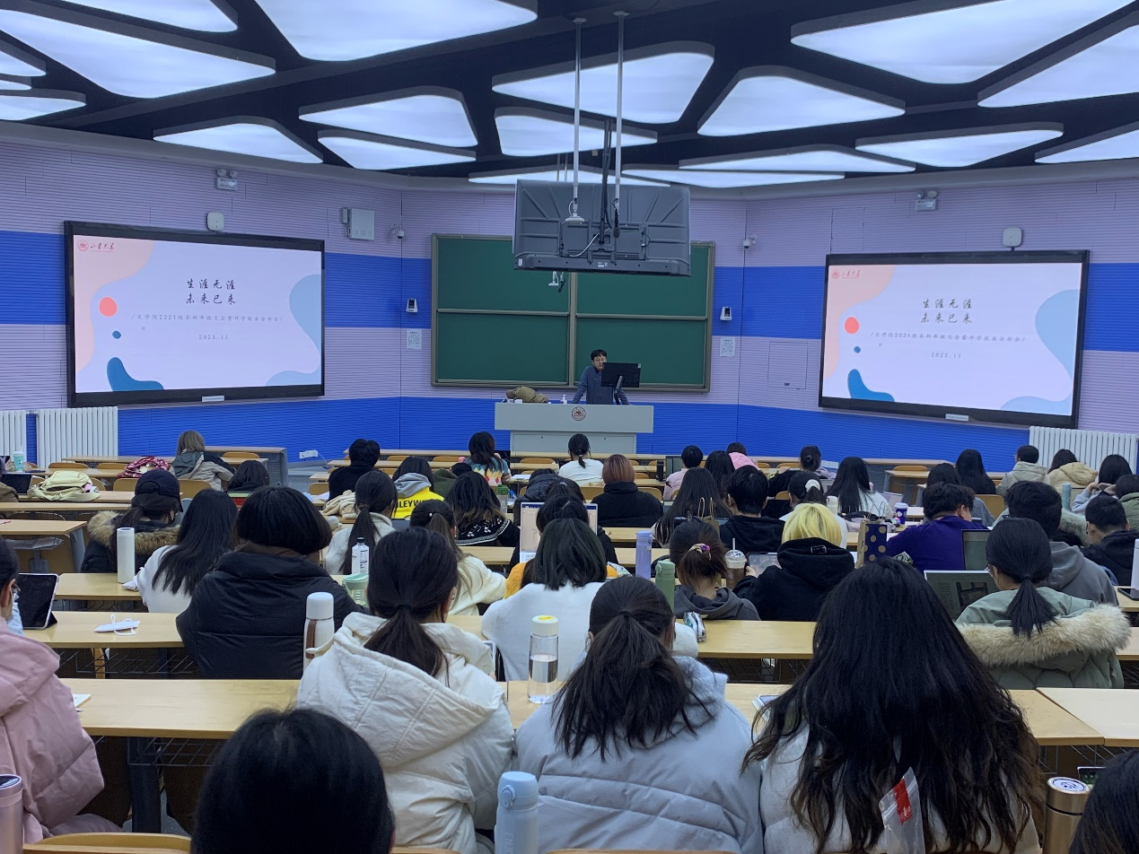 为帮助2021级本科生进一步了解本专业升学、就业的方向和渠道,更好地明确未来发展方向,提前做好生涯规划,11月30日下午,beats365唯一官方网站2021级辅导员张英杰组织开展2021级本科生年级大会暨升学就业分析会,会议主题为“生涯无涯,未来已来”。