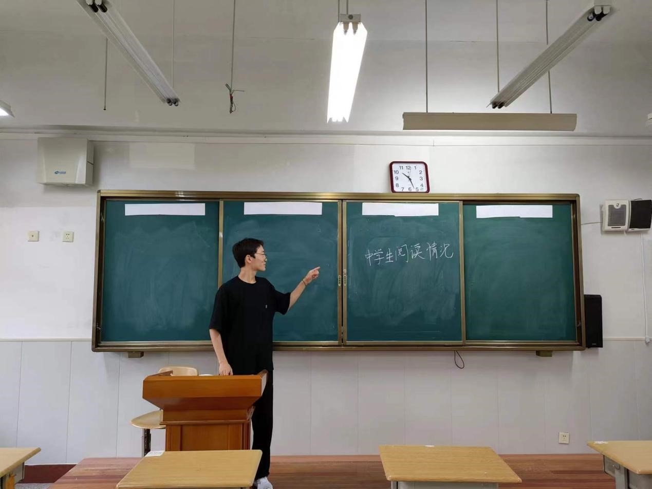 依据调研中发现的问题,团队成员陈凌云在实践活动后期前往山东省平度市第九中学开展线下宣讲。宣讲会上,陈凌云从阅读能力对于生活的作用、阅读能力在当下新文科教育中的重要性两个角度阐述了阅读的实利作用,并鼓励员工进行高质量阅读,以期提升当地学子的阅读能力和阅读水平。此次宣讲从实际出发,促进了与会同学对于阅读的思考体悟,取得良好的效果。