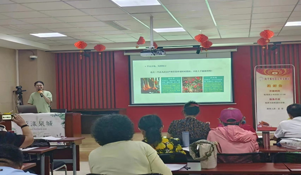 活动伊始,宣讲人傅艺璐、韦艺婕分别向社区居民介绍了团队信息、背景调研情况及泉城绿化的发展概况,并从打造“公园城市”的角度分享了泉城绿化的实效与亮点。接着,队员们向社区居民科普了生动有趣的植物知识,以作为济南市市花的荷花为切入点,向社区居民详细介绍了泉城各地的花木品种,并通过列举众多实际案例详细科普了种植各类花卉的实用技巧与注意事项。
