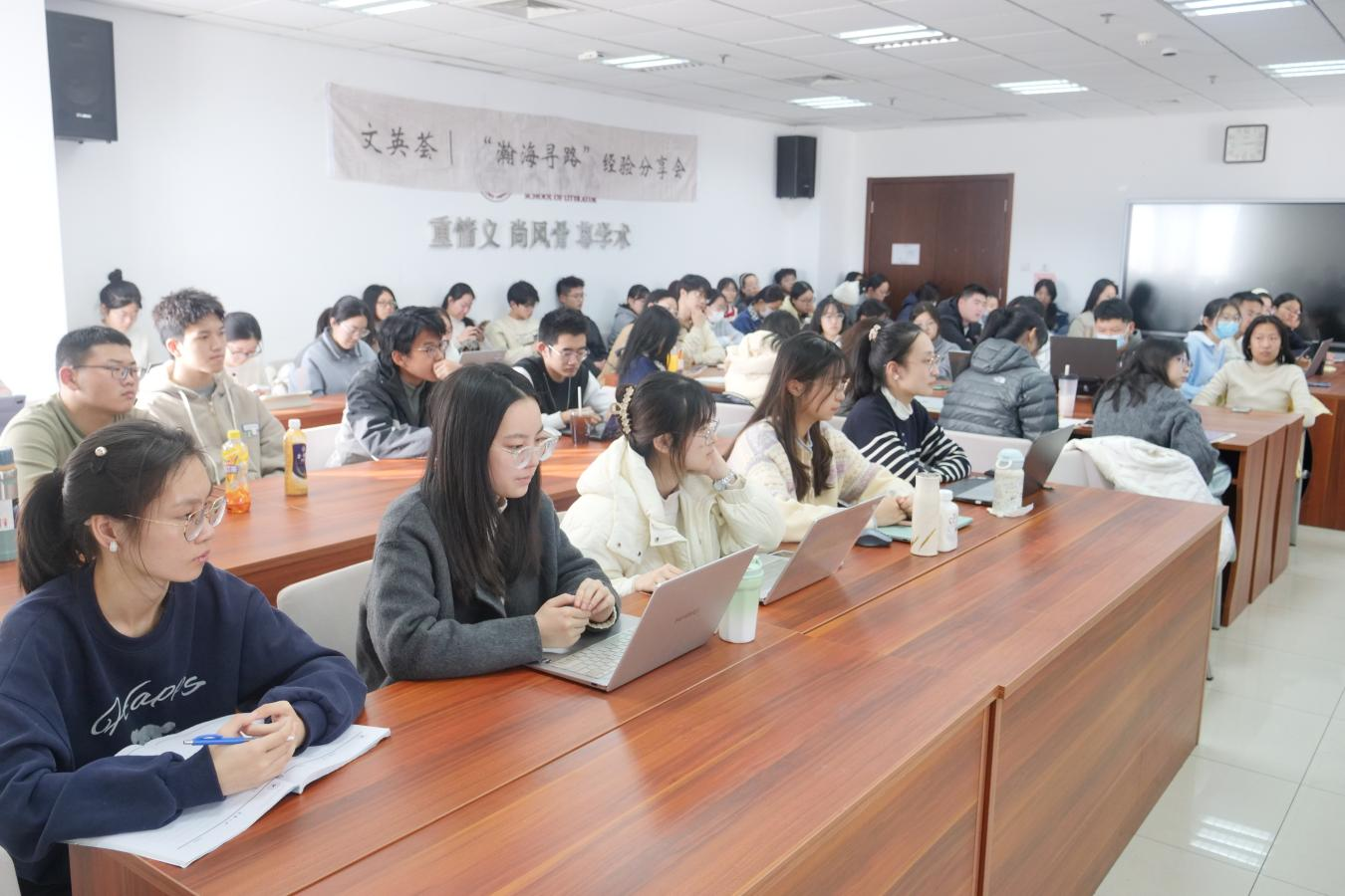 提问讨论环节中,同学们热情高涨、踊跃发言,结合自身论文写作过程中的思考与困惑向三位老师提问。老师们逐一耐心解答,并通过深度剖析相关案例,引导同学们在交流中深化认识、拓展思路,进一步提升论文构思能力。