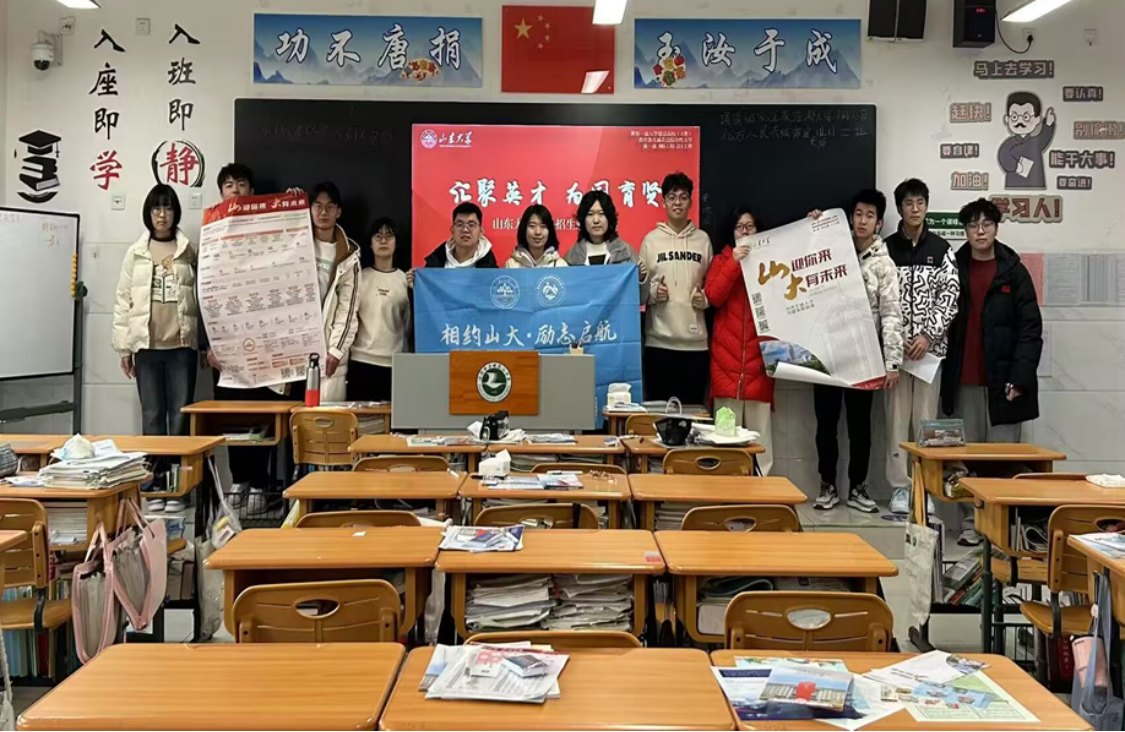 宣讲活动开展期间,团队成员走进教室,围绕山大百廿发展历程、团队建设、本科人才培养等方面介绍学校发展情况,详细解读近年来学校的招生政策。此外,队员们结合山大在民族救亡、国家建设中的红色足迹,讲述一代代山大人投身报国的青春故事,从闻一多先生的爱国呐喊到新时代山大人的科研报国,让同学们深刻感受到“为天下储人才,为国家图富强”的办学初心。