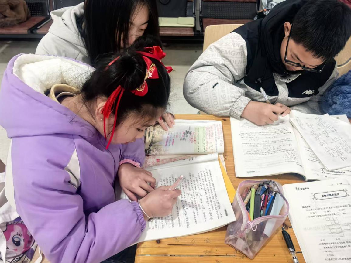 与此同时,团队还走进山口镇孩子们的世界,开启了一段温暖而难忘的陪伴之旅。新时代文明实践所的课堂上,没有传统意义上严肃的讲台,取而代之的是师生围坐一圈的温馨场景。团队成员向孩子们讲述语文、数学、英语等基础课课程,为孩子们提供课业辅导、书法教学等帮助。