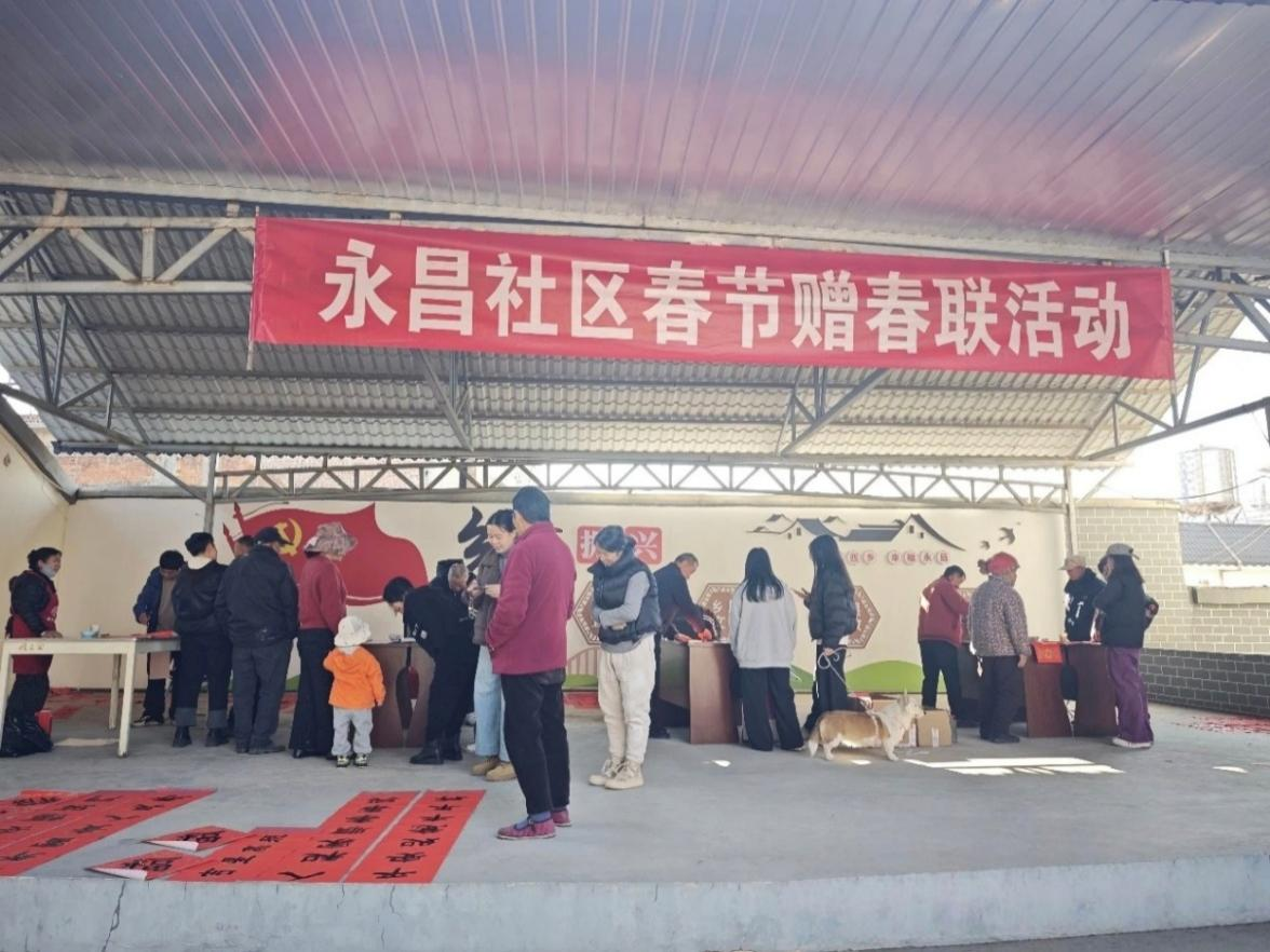 活动期间,团队成员现场观摩了由社区组织的“新春送春联”活动。书法家协会成员为居民现场书写春联,居民可自选内容并有序领取。团队成员与在场居民进行交流,了解他们对社区文化活动的参与感受。随后,团队参与了社区举办的文艺晚会,晚会节目由居民自编自演,涵盖舞蹈、歌曲、戏曲等多种形式,覆盖老中幼不同年龄段,展现了社区文化生活的多样性和居民的参与热情。
