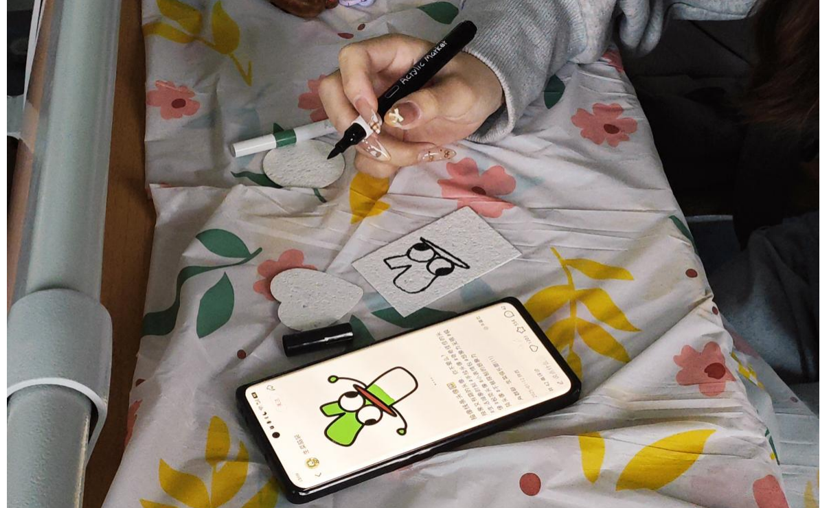 活动开始前,调研权益部成员提前到场,将洗碗棉、马克笔、小挂绳等工具整齐分发给每位参与者。活动过程中,同学们选择喜爱的海绵形状,专注地坐在桌前,用马克笔绘上心仪的图案与色彩,再系上一根小挂绳,最终完成一件专属于自己的解压神器。现场氛围和谐温暖,大家在制作过程中放慢了节奏、舒缓了心情,捏捏乐的乐趣在同学们绘画的图案中慢慢呈现。