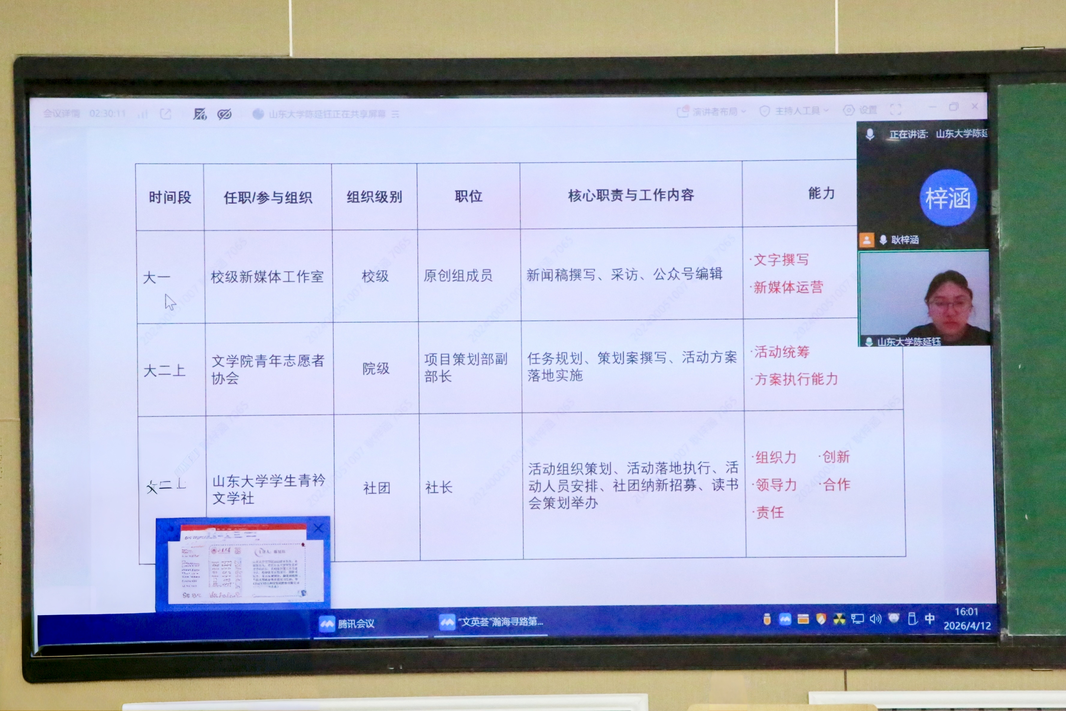 为解决公司学子对于实习的困惑,帮助其更好发挥专业优势以应对职场挑战,4月12日下午,公司于理综楼300d举办第十一期“文英荟”经验分享会。本次分享会围绕简历制作、面试技巧、实习过程等方面展开经验分享。公司2022级本科生姜潇涵、付小龙、陈延钰担任主讲,公司学术部成员肖雅琪主持活动。