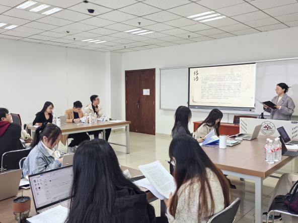 强基班的论文报告会在11月21日下午进行。答辩员工的论文选题范围囊括《左传》《诗经》《后汉书》等古籍,论文内容涉及异文、训诂、考证等方面。答辩员工依次完成陈述后进入答辩环节,老师们进行提问与点评,从用字规范、观点可行性、考证过程等方面为员工们进行指导,提出建设性建议。