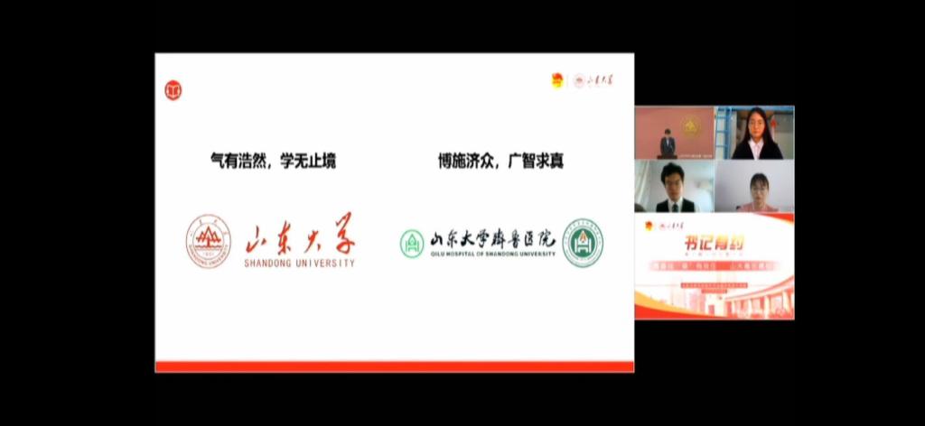 活动最后,郭新立做总结讲话。他对山大援鄂医疗队成员的无私奉献表达了敬意与感激,对湖北的同学表达了关怀与鼓励,对山大老师所做的抗疫贡献给予了极高的评价。他表示,山大人坚守“为天下储人才,为国家图富强”的办学初心,用心、用情绘成“家国情怀”“崇实品格”“担当精神”“创新能力”四幅自画像。另外,他介绍了当前学校为解决返校复学、毕业生就业问题所采取措施的进展情况,就员工关切的网课教学、线上考试、研究生复试、毕业答辩学位授予、大三保研、暑期学校、医学规培等问题,也做出了解答,并承诺做出妥善的安排。郭新立引用习近平总书记的“青春因磨砺而出彩,人生因奋斗而升华”,对全体山大青年提出了期望,希望大家坚定理想信念、锤炼提升自我、直面困难挑战、严守纪律要求、传承战“疫”精神。