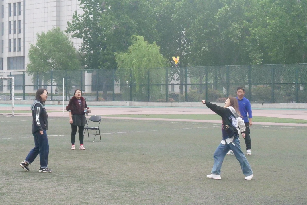 运动会的项目丰富多样且充满乐趣。跳大绳、扔沙包、踢毽子、投掷飞镖、足球射门、水管传球、自行车慢骑等趣味活动吸引老师们参与其中,他们齐心协力,在操场上展现了团队精神。在套圈活动中,老师们瞄准目标,屏气凝神,不少老师经验丰富、百发百中,场上一片欢声笑语。拔河角力项目是运动会的一大看点。在分组之后,老师们一改讲台前气定神闲的姿态,蓄势以待。随着裁判的一声哨响,老师们拼尽全力投入比赛,观战的同学们纷纷高声呐喊,为老师们加油助威,现场气氛热烈紧张,老师们的精彩表现也赢得了阵阵欢呼与喝彩。