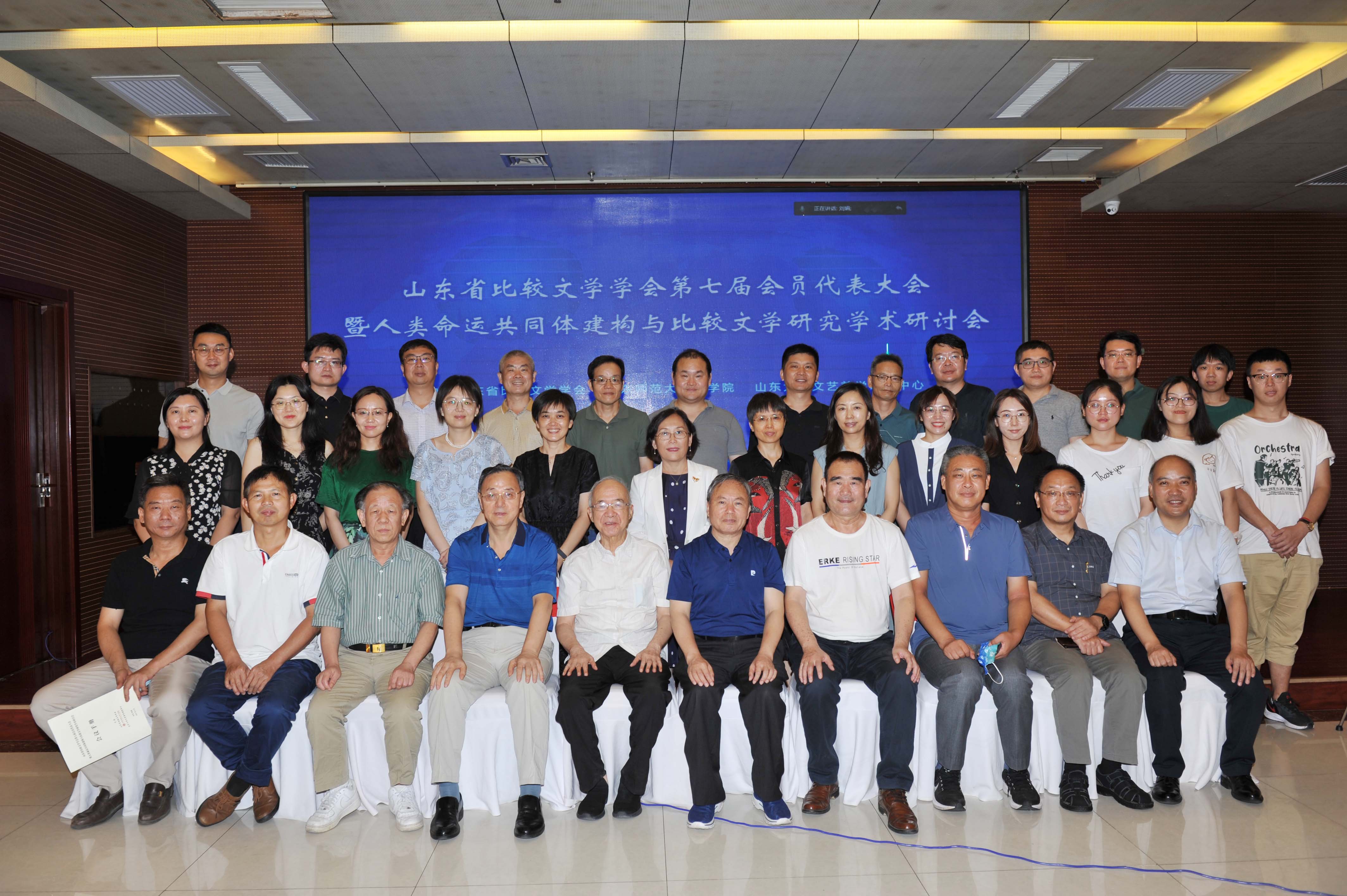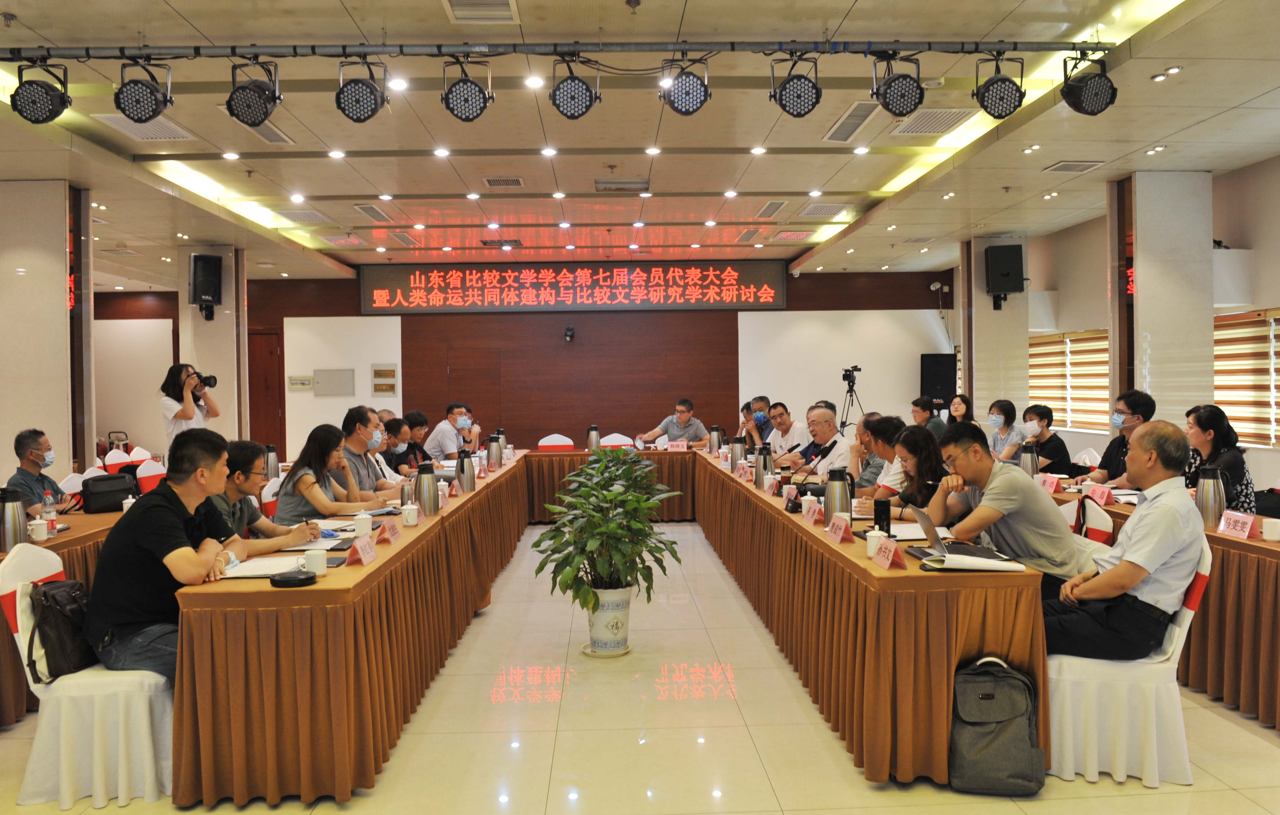 2021年8月10日下午,由山东省比较文学学会、BEAT365英国官网网站文艺美学研究中心和山东师范大学beats365唯一官方网站主办的山东省比较文学学会第七届会员代表大会暨人类命运共同体构建与比较文学研究学术研讨会在济南新航大厦隆重举行。山东省比较文学学会前会长、学会顾问曾繁仁教授到会致辞,中国比较文学学会副会长兼秘书长、北京大学教授张辉在研讨会上做学术报告。会议采取线上线下结合方式进行,二百余位学者参加会议。