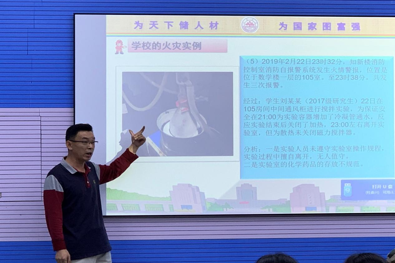 校园安全知识专题讲座由公安处杜春兴老师主讲,新生线下到场参与。讲座结合学校和员工实际情况,从宿舍安全、饮食安全、实验室安全、交通安全、网络安全、财产安全、人身安全等方面进行细致的讲解;通过实际案例,生动形象地讲述了发生安全事故的严重后果。讲座增强了同学们的安全意识和自我保护能力,使得“安全第一”的理念深入人心。