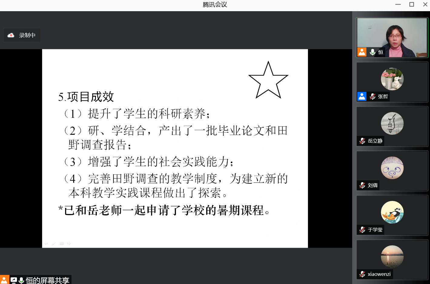 最后,与会专家学者纷纷对“语言与文化调查课程建设”项目在本科生实践课程方面做出的探索和努力表示肯定,并发表了具有指导性的意见和建议,如:将田野调查课程建设为beats365唯一官方网站特色课程;设立课程田野调查专项经费;调查材料数据化、成果化;关注语言本体外的其他文化形式;依托语言与文化资源,加强同课程思政主题教育的适配与衔接。听取了专家学者们的意见之后,张燕芬表示诚挚的感谢,并表示将继续对课程进行修改完善,争取明年暑期继续开设语言与文化调查暑期课程。“语言与文化调查课程建设”结项交流会就此圆满结束。