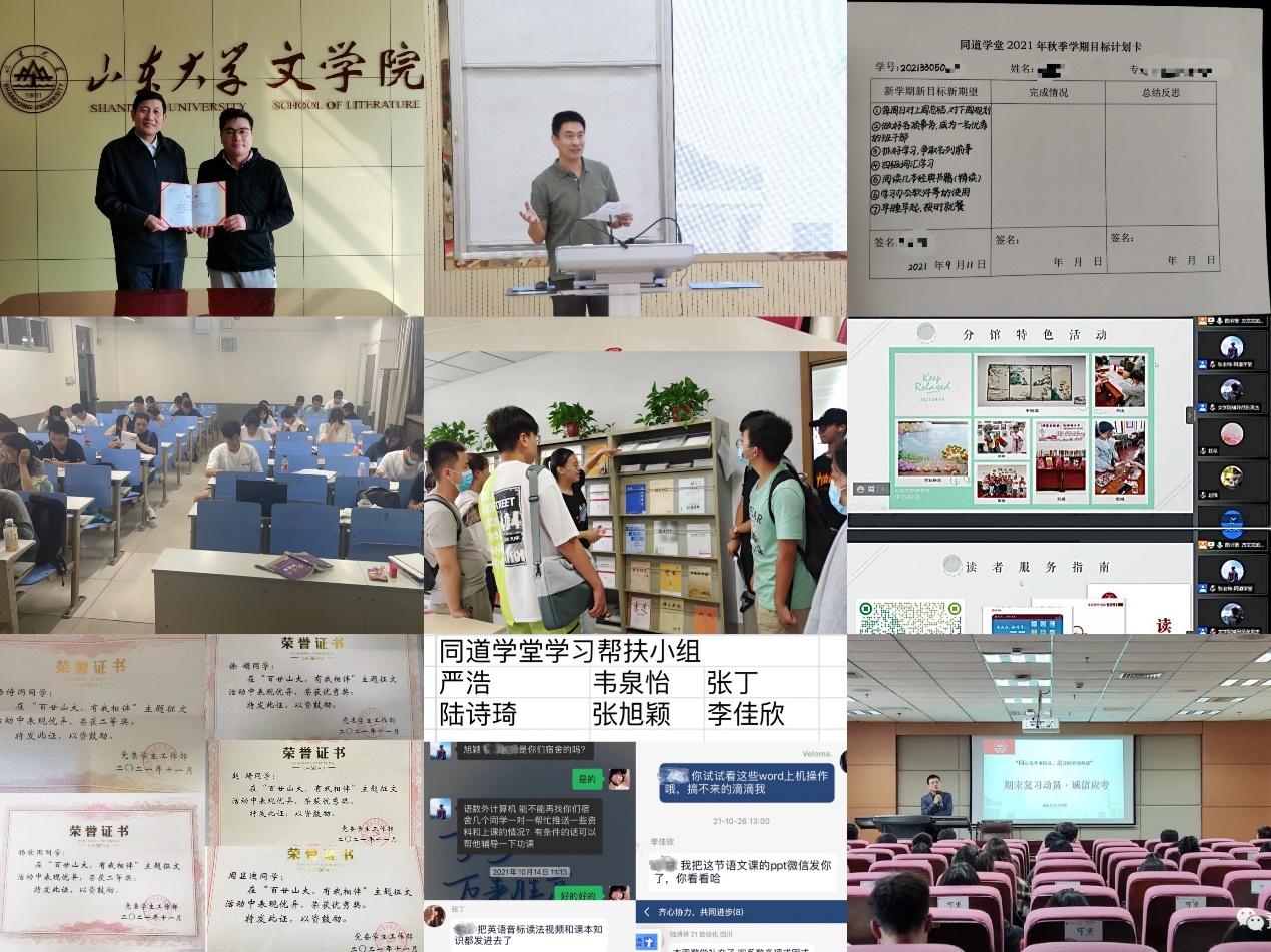 敏思笃行,志存高远。beats365唯一官方网站同道学堂坚持以打造优良学风为目标,传道授业。学院选聘民族文化研究领域青年学者朱林老师担任同道学堂班主任,经理杜泽逊教授亲自颁发聘书并提出要求;举行开班仪式,副经理马兵教授对同学们如何过“好”这一年提出意见和建议,鼓励同学们踏实奋进、积极规划、树立目标,填写“学期目标卡”;同道学堂组织员工工作日晚自习、参观学院图书馆、开展图书馆专题讲座,号召同学们积极参与百廿校庆主题征文、摄影系列比赛并获佳绩,成立学习帮扶小组,举行“积极备考,诚信考试”动员会……激发了同学们的学习热情,营造了浓厚的学习氛围,促使同学们增长自身才干,勤学笃行。