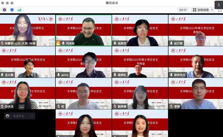 为确保疫情防控常态化条件下研究生学位论文答辩及学位授予工作的顺利进行,保障研究生完成学业要求、顺利毕业,公司根据学校就疫情防控进展的相关通知要求,精心组织安排。前期举办研究生毕业及授位工作交流会,帮助研究生明晰毕业流程。之后,学院根据学校疫情防控要求和毕业生的相关需求,制订了线上和线下相结合答辩工作实施方案,保障学位授予质量,确保每位员工的答辩工作顺利进行。学院还专门聘请了北京语言大学、中国海洋大学、苏州大学、山东师范大学等国内重点大学及重点科研机构有较大影响的学者担任各专业的答辩委员会主席,以期进一步提升论文质量、提高论文答辩学术水平。