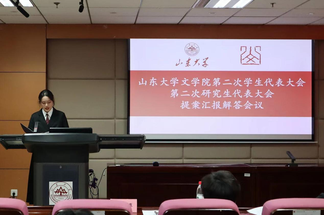 院员工会权益部部长刘妍妍与研究生会权益工作负责人黄淑辰依次进行权益工作汇报和提案报告,包括员工权益日常工作、反馈机制等内容,重点汇报了本科生与研究生提案的汇总整理情况。