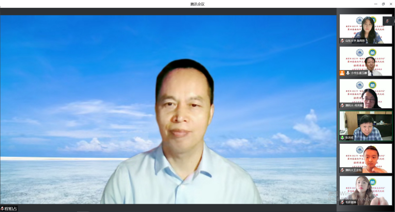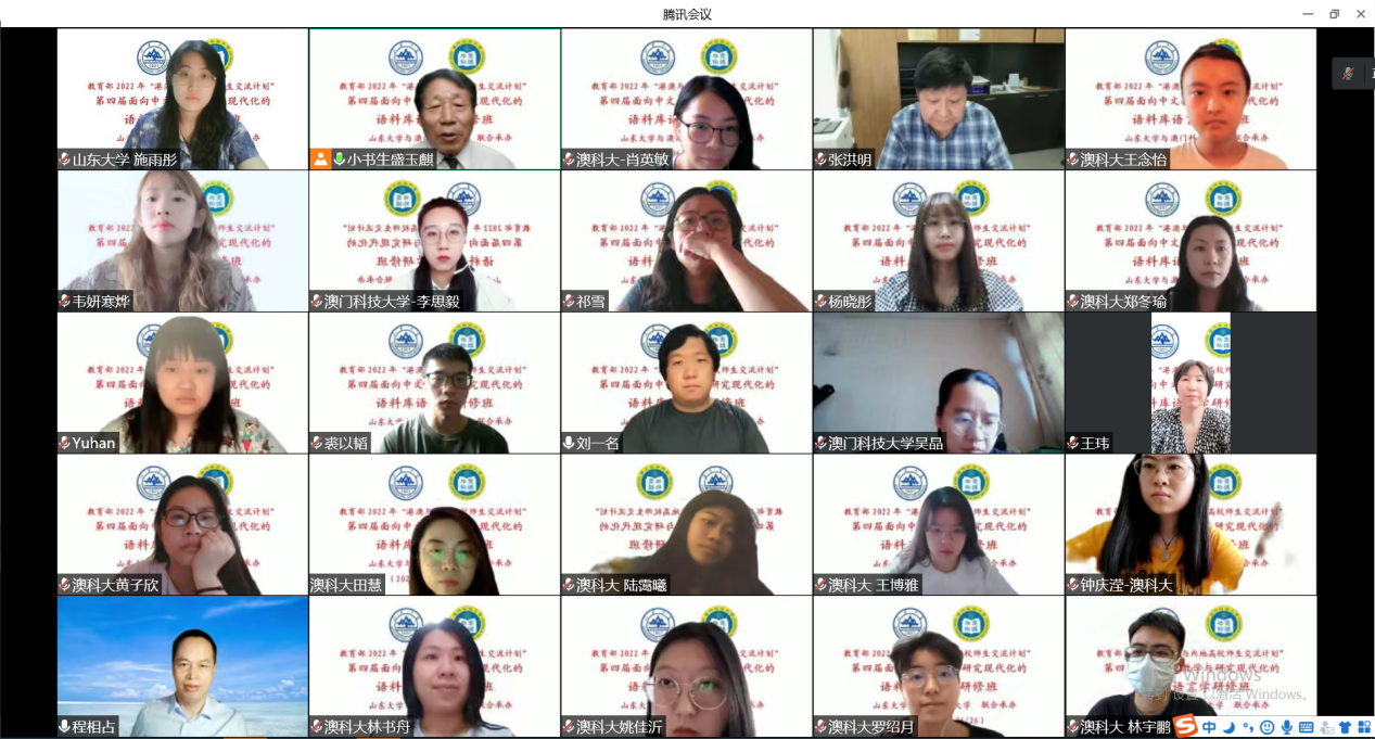 近日,教育部“港澳与内地高校师生交流计划”——第四届“面向中文教学研究现代化的语料库语言学研修班”通过线上的方式正式开班。本次研修班由BEAT365英国官网网站与澳门科技大学联合承办,旨在加强港澳台地区员工与内地的交流,推动语料库在各学术领域中的应用,提高员工使用语料库进行相关科研的能力,进一步助力“一带一路”倡议实施与人才培养。澳门科技大学国际学院经理、世界汉语教学学会副会长张洪明,beats365唯一官方网站副经理、博士生导师、程相占教授及全体学员出席开班仪式。开班仪式由beats365唯一官方网站教授、研修班总负责人盛玉麒主持,张洪明经理和程相占副经理分别致辞。
