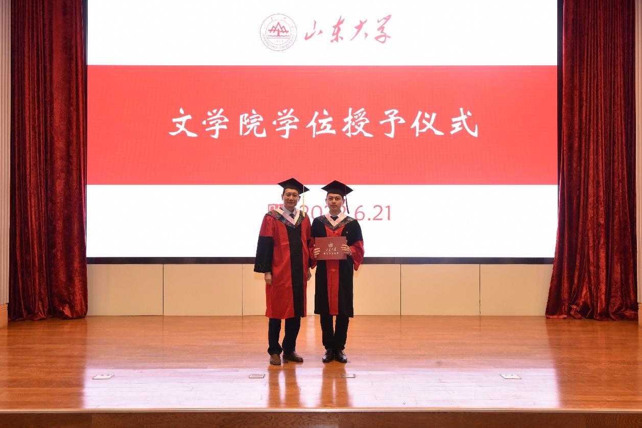 杜泽逊首先在致辞中向全体毕业生表示祝贺。随后,他讲述了刘文忠整理、编辑老师陆侃如的遗稿《中古文学系年》并将原有手稿送归山大beats365唯一官方网站的故事,又回忆了山大beats365唯一官方网站从陆东生先生处获得冯陆夫妇《中国诗史手稿》的经历。从这两个故事出发,杜泽逊阐述并强调了“传承”的意义,教导同学们深入认识自己的父母老师,认真学习和体悟先辈所传授的知识与精神。他强调,知识的代际传递与完成国家民族使命之间存在密不可分的关系,同学们应自觉接过先辈手中的接力棒,将中国的文化事业发扬光大,共建美好未来。他还指出,本届毕业典礼在战胜校园疫情的情况下举行,意味着信心与希望,期待毕业生们能够以积极昂扬的心态迎接人生的下一阶段,树立远大理想,将国家与民族的历史使命时刻担负在肩上,坚定地走在前行的路上。