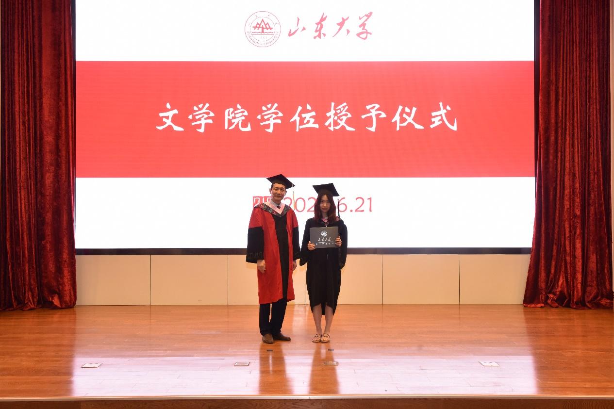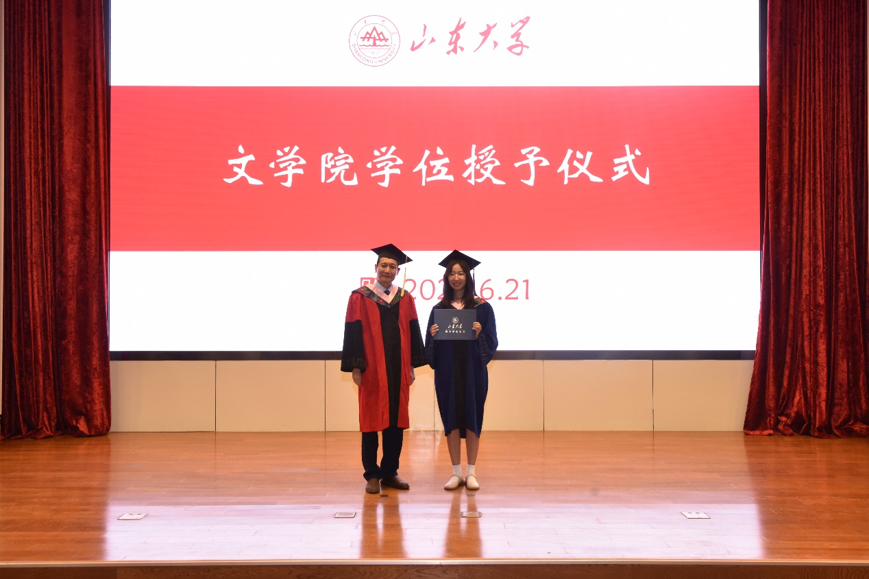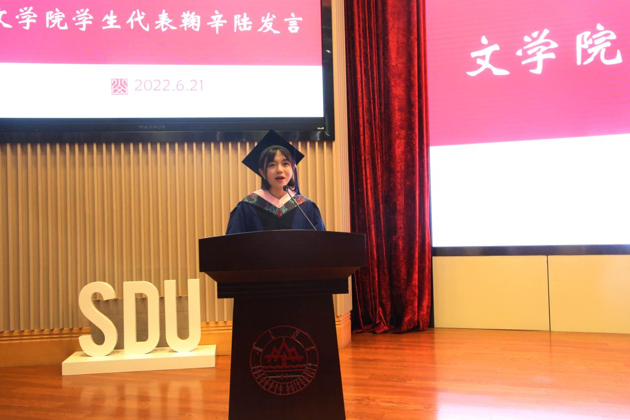 在发言环节的最后,2019级硕士研究生鞠辛陆作为毕业生代表分享了自己的内心感想。她回顾了在山大七年的时光,认为自己收获了可贵的精神自由和温暖的归属感。最后,她向学院的老师和同学们表达了真诚的感谢和祝福,期待同学们能永远铭记读书时的欢愉与兴味,保持对生活的热忱与真诚,祝愿学院拥有更加辉煌灿烂的明天。