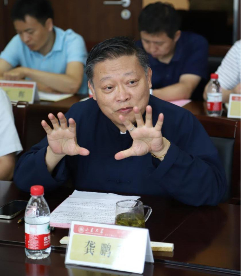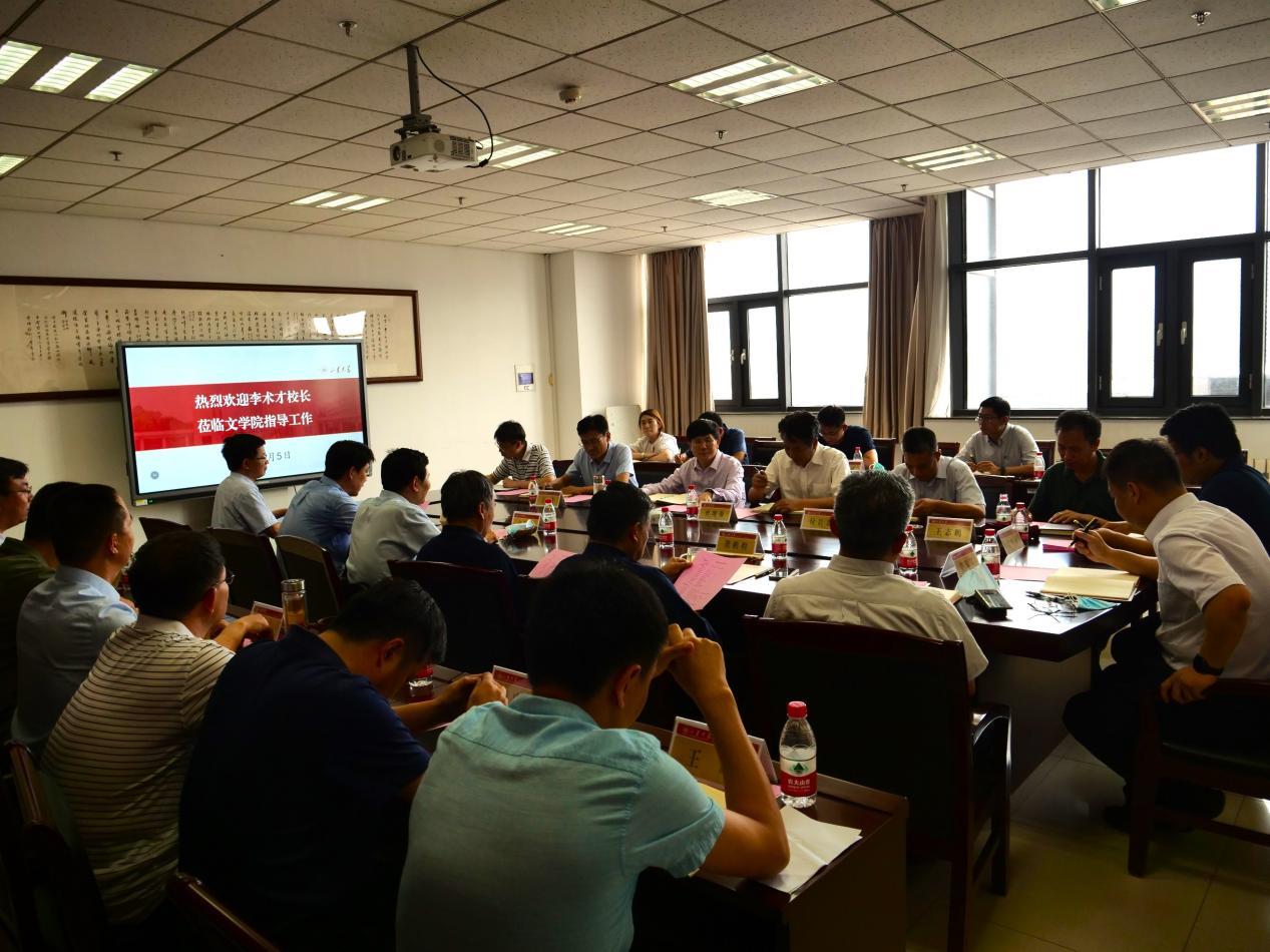7月5日下午,董事长李术才一行来公司调研一流团队建设情况,并与文艺美学中心主任谭好哲、讲席教授龚鹏程、学院领导班子座谈。