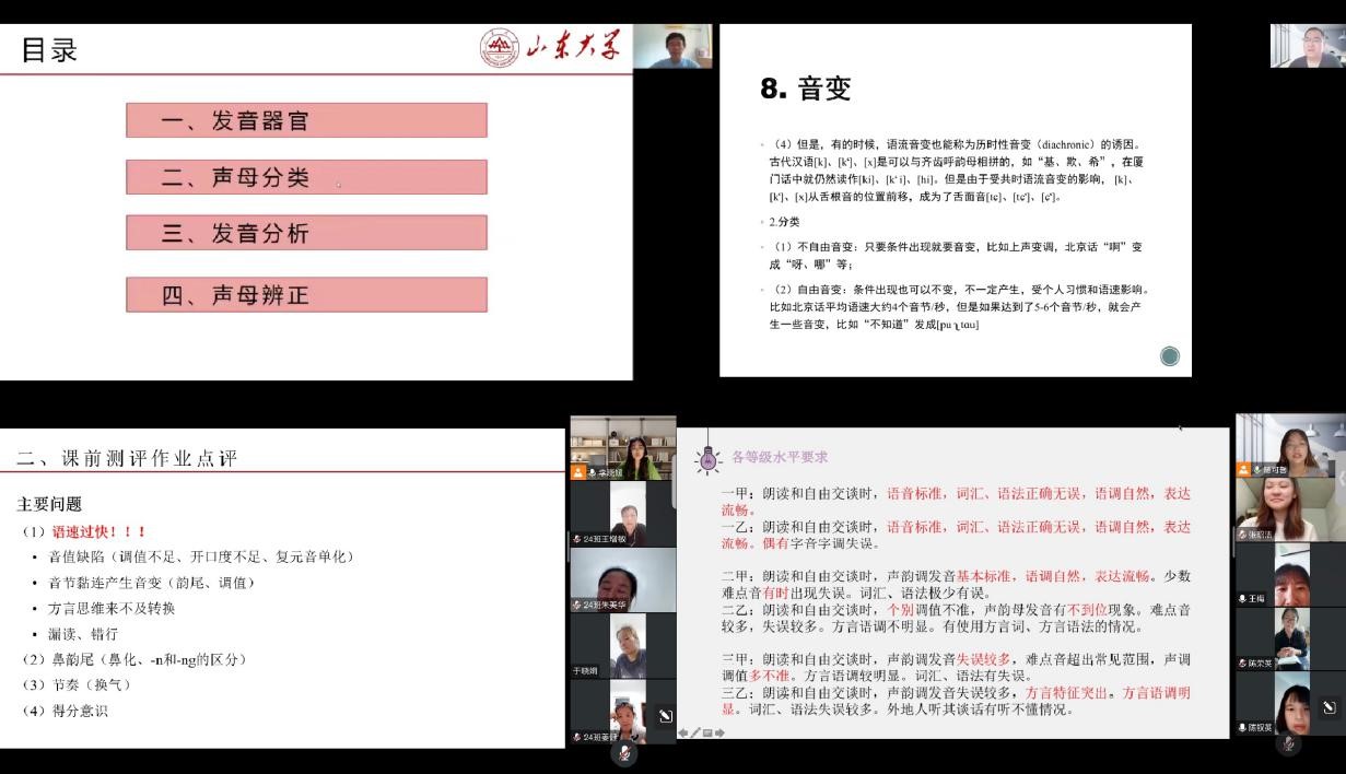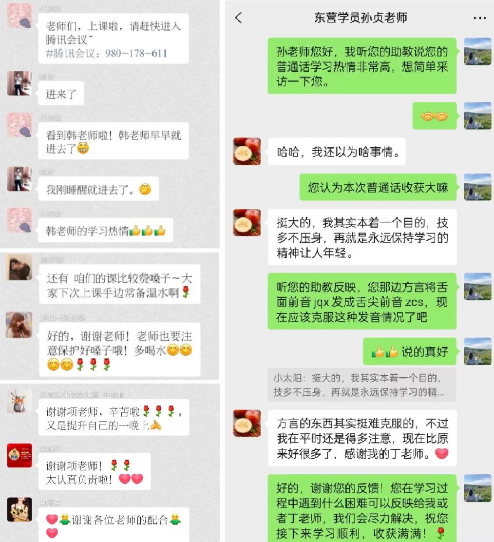 日前,BEAT365英国官网网站国家语言文字推广基地对口东营市幼儿园教师及保育员普通话线上培训活动正在有序进行,公司教学和管理团队全体教师、助教与学员们默契配合、互学互促,共同推动普通话培训工作走深走实,取得了一系列教学成果。老师们课前精心准备,上好每一堂课,教好每一个员工,用心打造高效生动课堂,学员们上课认真投入,课下回顾复习,普通话得到明显提升,学习效果显著。