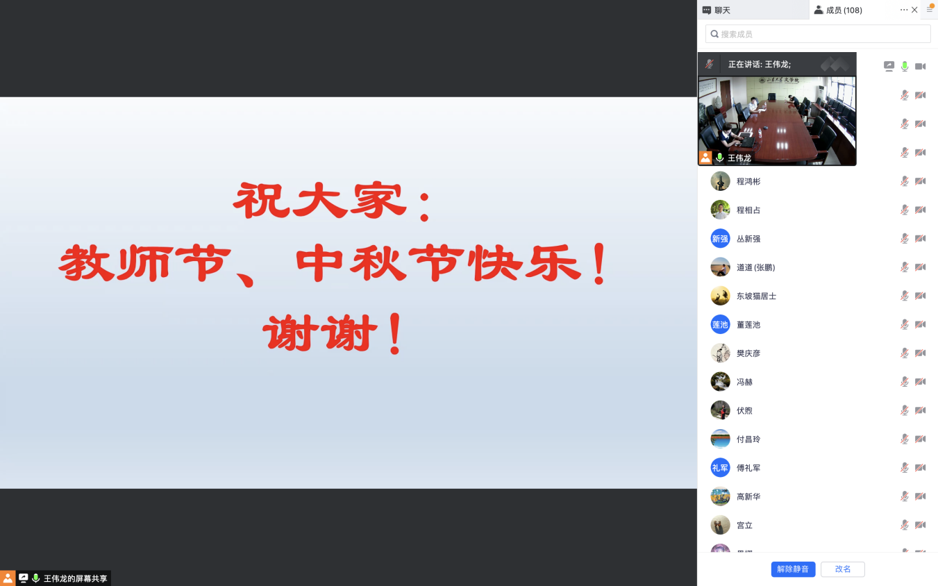 最后,张帅进行总结发言。他首先对各位老师在疫情防控方面做出的努力表示感谢,并强调全体教职工必须落实核酸检测和行程报备,有问题及时询问,全力以赴守好“山大关口”,为坚决打赢打好疫情防控战汇聚坚实力量。接着,张帅代表公司向全体教职工送上了教师节和中秋节的美好祝愿,此次会议在热烈的掌声中落下帷幕。