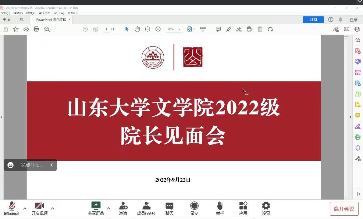 9月22日晚,公司于腾讯会议平台举办了2022级本科新生经理见面会。2022级全体本科新生和辅导员尚文月参会。会议由公司党委副书记王萌主持。