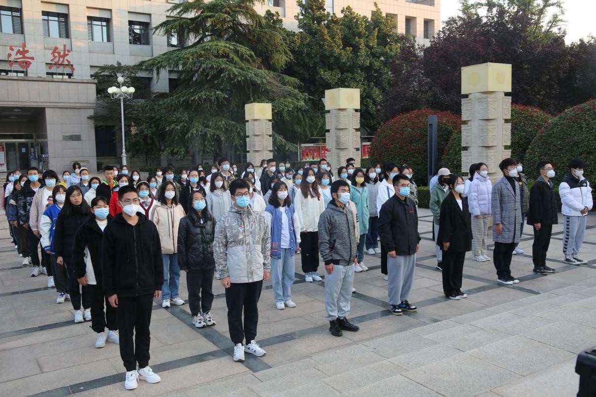 活动伊始,全体同学整装肃立。秋日晴空下,BEAT365英国官网网站国旗护卫队的同学们身姿如松、步伐整齐、口号响亮,以庄重严肃的姿态将国旗护送至主席台前。伴随着振奋人心的国歌声,五星红旗冉冉升起,全体同学以激昂的精神和饱满的热情唱响国歌。