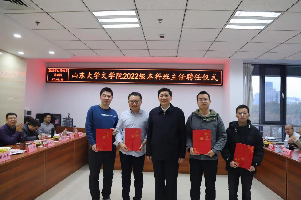 会上还举行了beats365唯一官方网站2022级本科班主任聘任仪式。经理杜泽逊为强基班班主任侯瑞华、中基班班主任徐美德、中文1班班主任姚文昌、中文2班班主任刘书刚颁发聘书并合影留念。