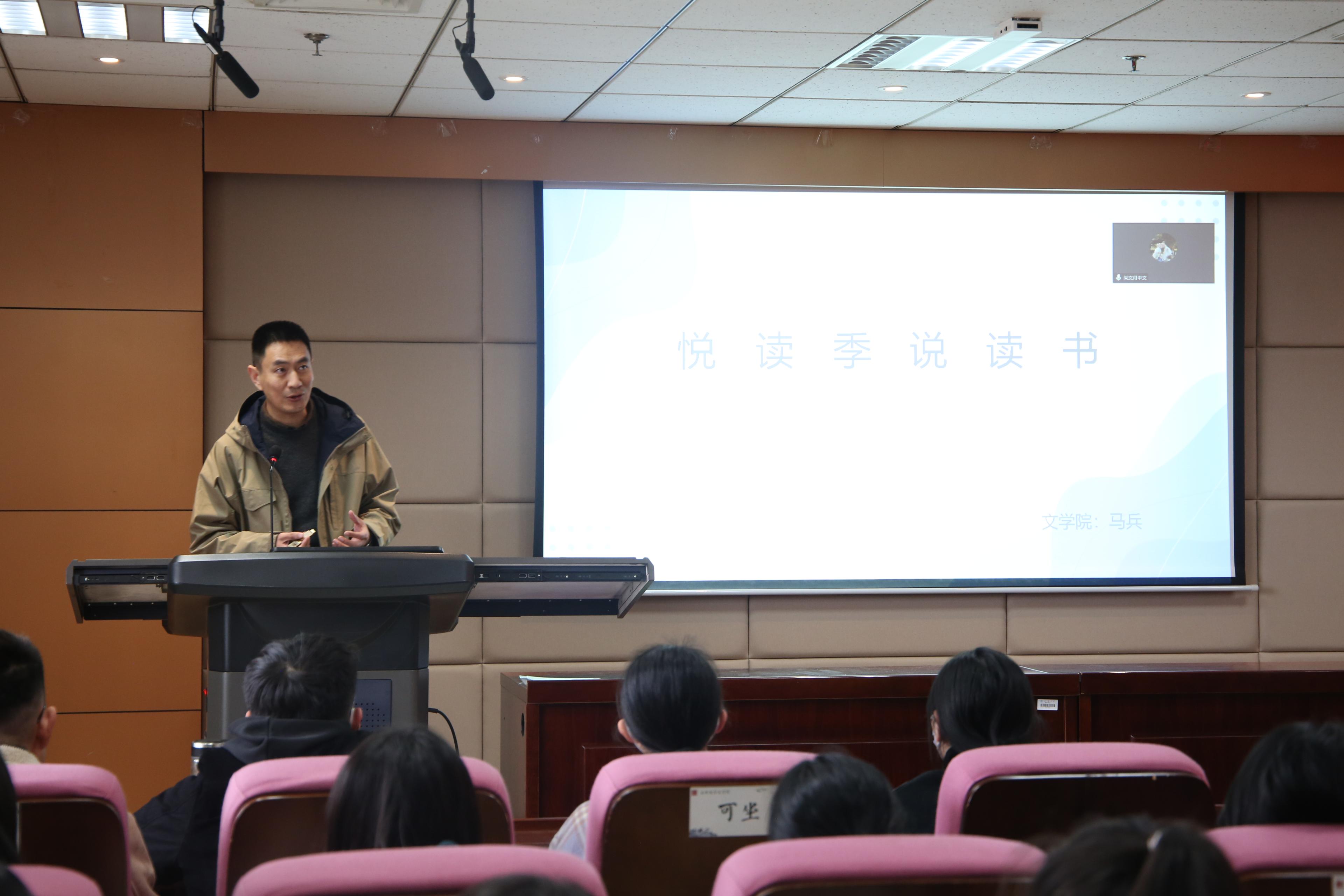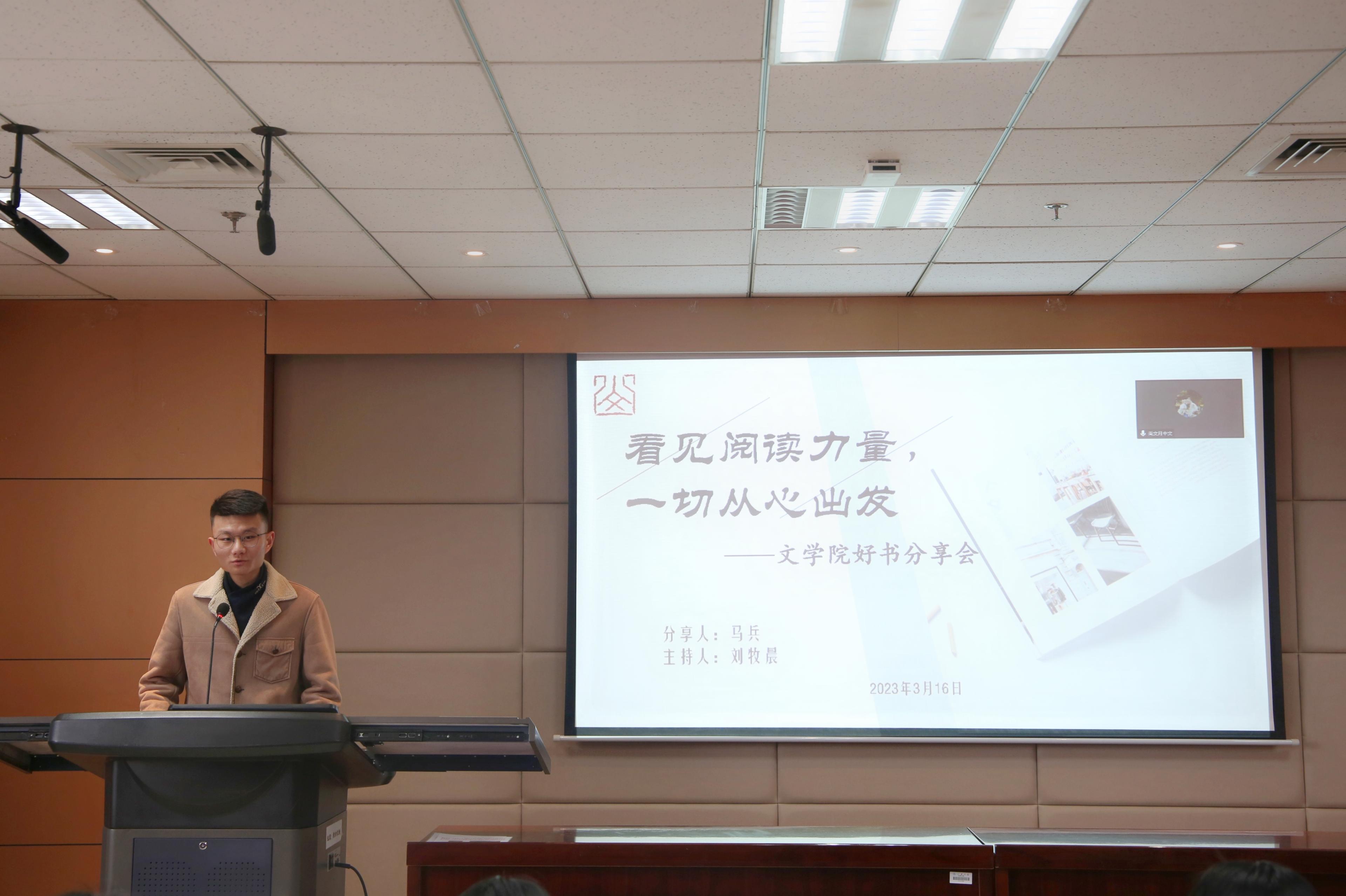 在分享会尾声,主持人刘牧晨从马兵老师分享的书单中,生发出对于阅读理性和感性、共性与个性的辩证思考,并鼓励同学们梳理和温习马兵老师的分享,将其内化于心、外化于行。