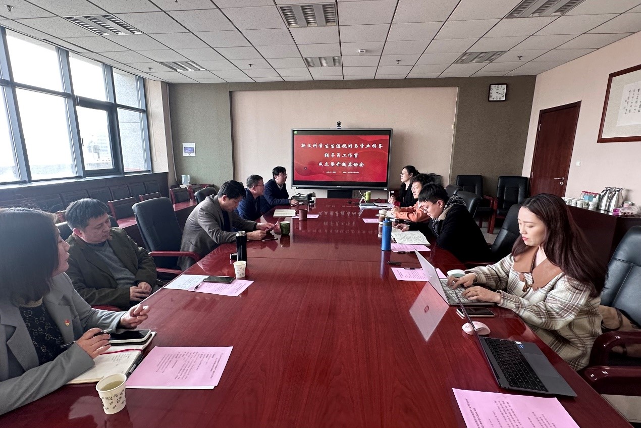 3月24日,新文科员工生涯规划与学业指导辅导员工作室成立暨开题启动会在知新楼A座706室举行。本次会议由公司辅导员果娜主持,公司党委书记张帅,党委副书记王萌,副经理杨建刚、樊庆彦,管理公司党委副书记周琳,学院辅导员张博、张英杰参加会议。