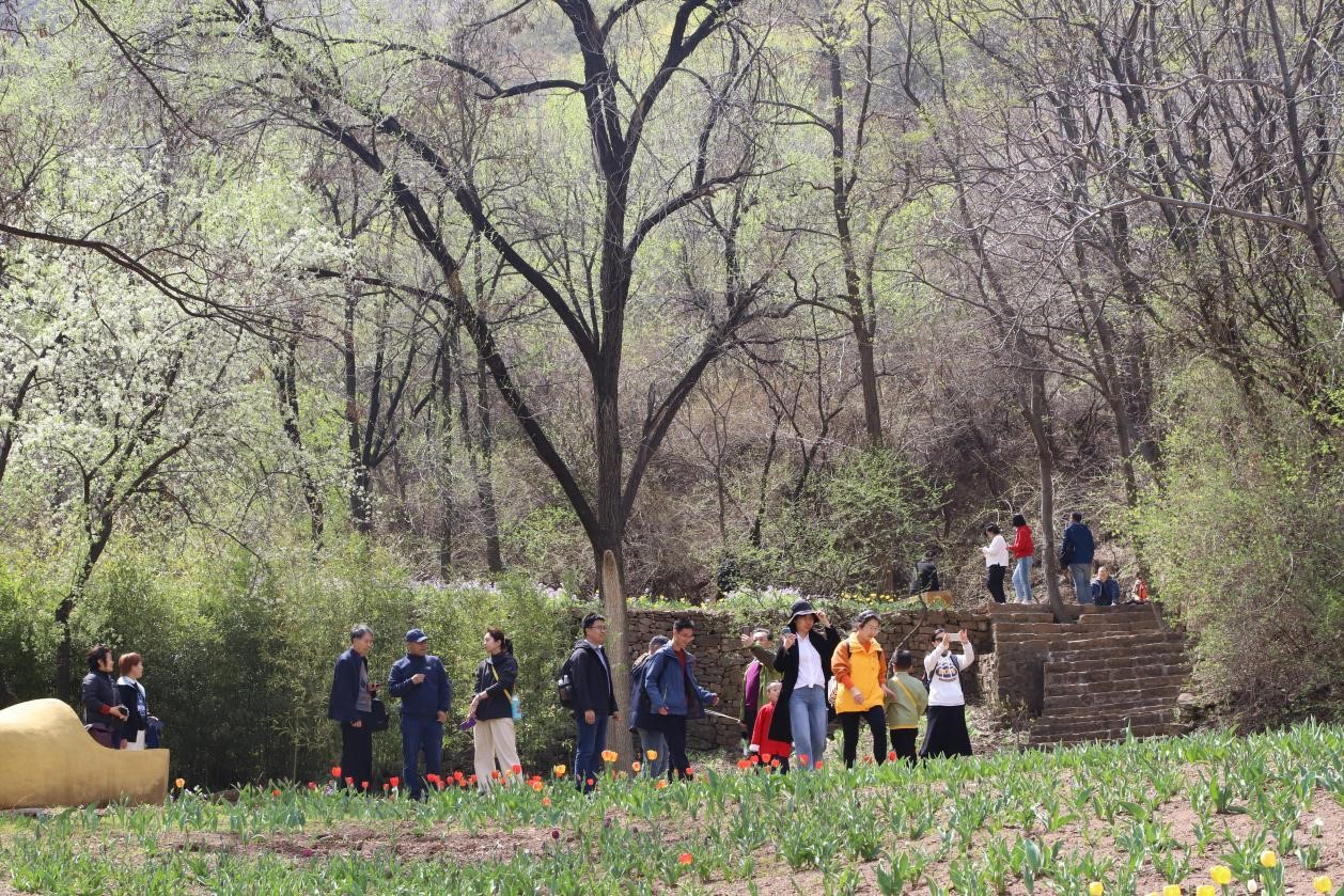 若待满城花似锦,出门俱是看花人。四月的红叶谷,满目青翠,鸟语花香,有着与秋日胜景不同的别样魅力。大家首先来到绚秋湖,流连于湖光山色,尽情享受春日时光。走进天趣苑,天鹅引吭、孔雀开屏,仿佛诉说着春日的生机,也向客人们致以友好的欢迎。大家纷纷拍照合影、逗引喂食,人与动物和谐相处,自然人文相映成趣。行至朱老庵,大家认真了解忠臣蒙难、百姓搭救的传说故事;漫步至万叶塔,大家登高望远,远山相映,层峦叠翠,景区美景尽收眼底。在郁金香盛放的欧洲风情谷,大家徜徉于花的世界、林的海洋,聆听鸟的欢唱、泉的鸣响。老师们三五成群,有说有笑;孩子们奔跑追逐,嬉戏打闹。在自然的怀抱里,大家沉醉其间、忘我享受。