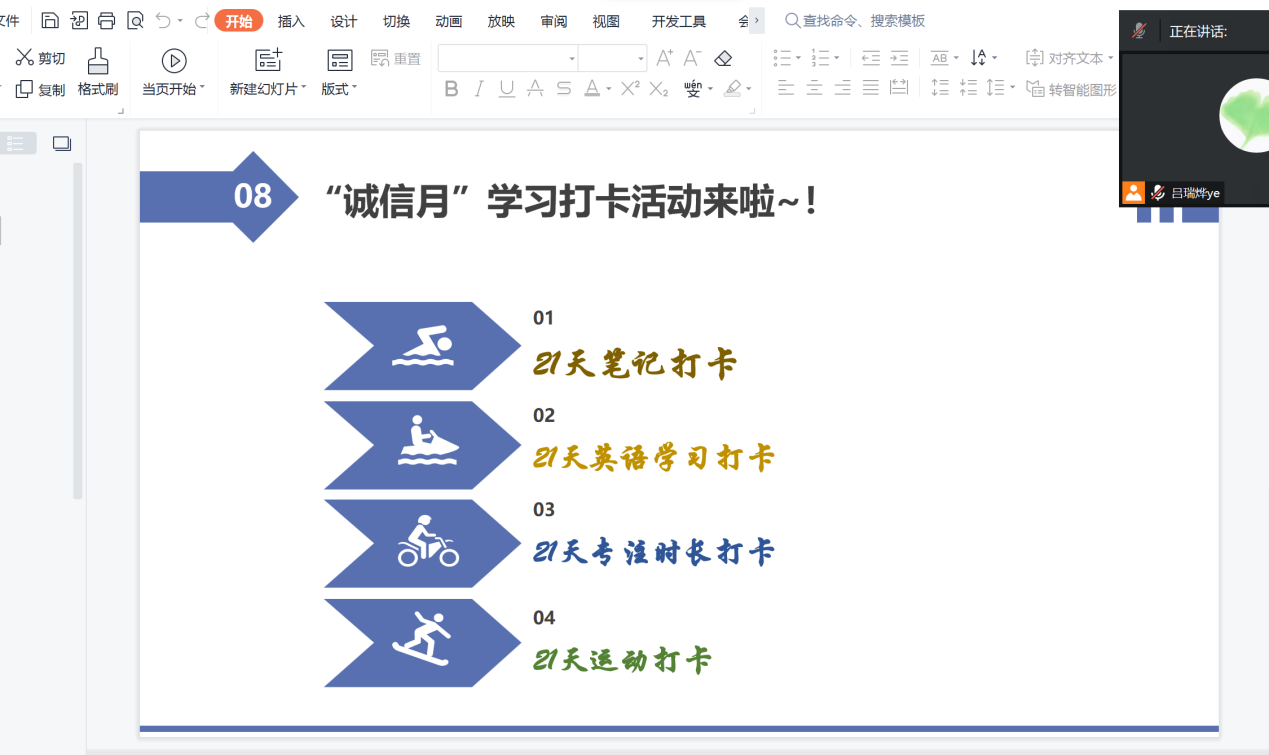 形式创新多彩,全面育人特色突出。为强化活动效果,彰显育人特色,各班结合学科专长开展形式多样的活动。2021级中文二班同学代表进行了“青年成才,诚信为先”的演讲,引起了与会同学的共鸣。同时,同学们签署了诚信卡片,保证加强对生活中诚信行为的自我监督。2021级中基班开展了“21天诚信打卡活动”,督促同学们坚持学习打卡与运动打卡,得到了同学们的积极响应。2021级强基班策划了以书法竞赛、古诗词赏析、“诚”字形义剖析等诚信教育环节,在学习传统文化之余加强了同学们的诚信意识,引导同学们守信于己、诺信于人、践信于行。2022级中文二班鼓励同学们记录班会收获、抒发心灵感悟,并进行保存和宣发。