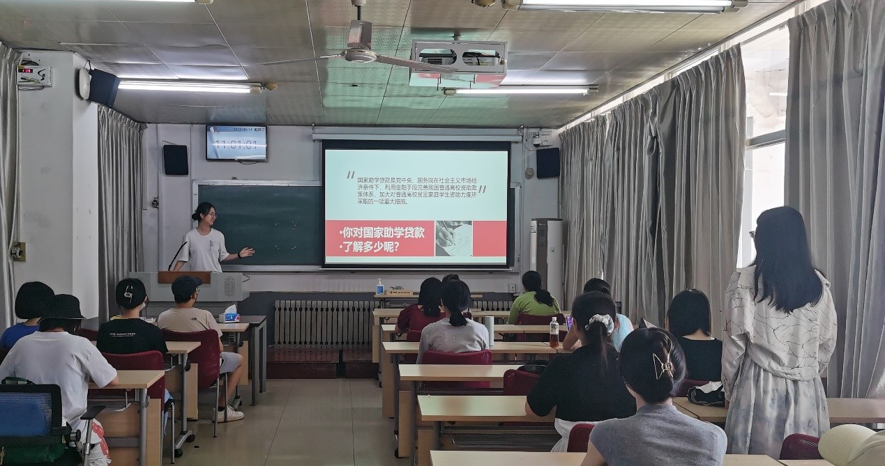组织周密有序,资助政策筑梦育人。学院高度重视此次活动,结合各年级同学的实际情况与需求,组织同学们以班级为单位有序召开资助诚信教育主题班会。为帮助家庭经济困难员工了解政策、用好政策,各班开展了国家和学校的资助体系和政策宣讲。2020级中基班生活委员张云逸从助学贷款、困难认定、其它政策、资讯获取途径等内容入手,向同学们分享围绕学校“勤贷助”政策,讲解条理清晰。2022级中文一班班长张雅茹向同学们介绍了高校家庭经济困难员工资助体系,并通过金融诈骗案例分享了“金融安全”的相关知识,帮助同学们提高风险意识。