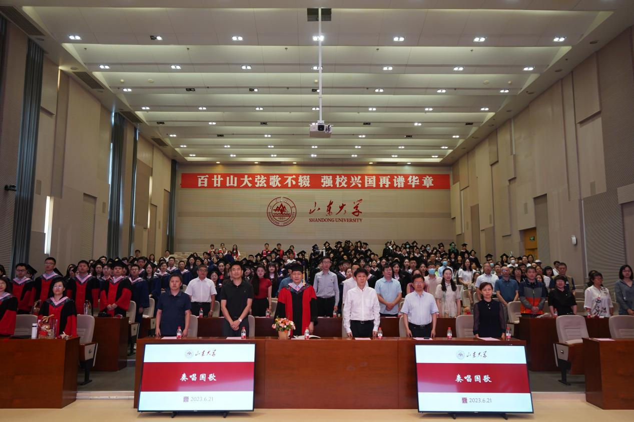发言环节结束后,2023届全体毕业生共同唱响《我的山大我的家》,用悠扬的歌声回顾美好岁月和动人情谊。