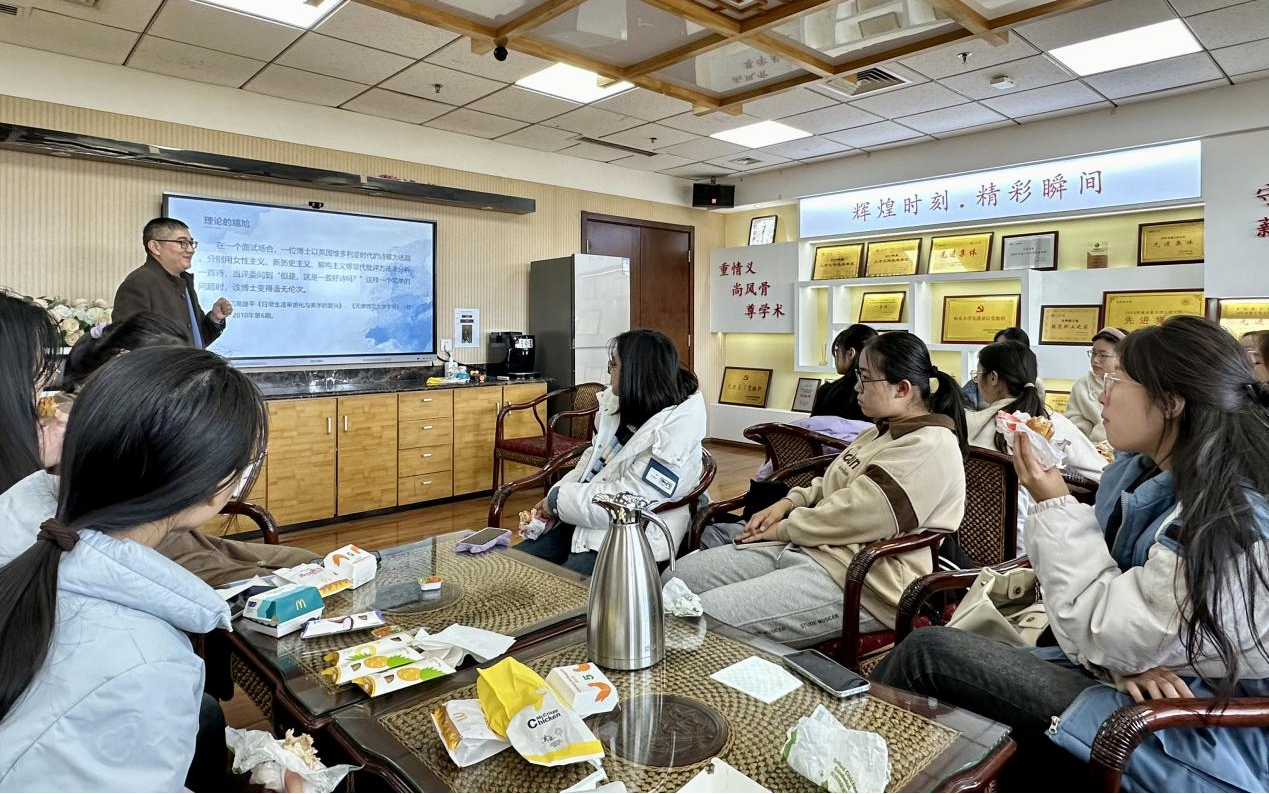 最后,韩清玉教授叮嘱同学们,在今后学习的过程中会面对各种各样的理论,而哪些理论能够直接面对文学作品、哪些理论仍是概念层面的抽象演绎,需要大家分辨。此外,他还强调,想要文学学得好,就不能局限于文学,一定要注重文史哲学科的结合学习。在同学们的掌声中,第三期新生午餐会圆满结束。同学们纷纷表示,通过与韩清玉教授的交流探讨,自身对文艺美学学科有了更深入的认识,能进一步把握文艺美学从提出到学科化建构的发展脉络,从而感受到文艺美学的学科交叉特色。