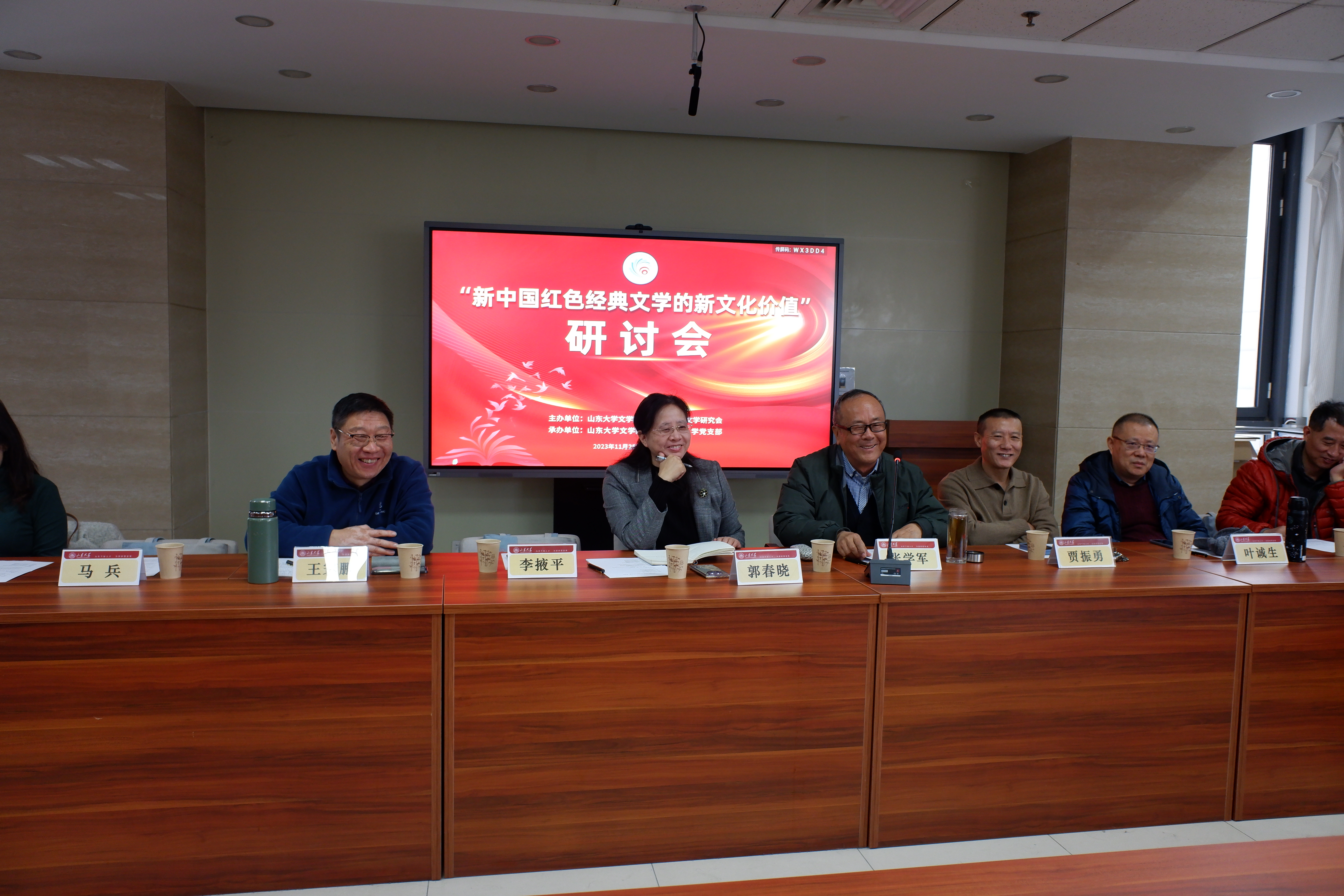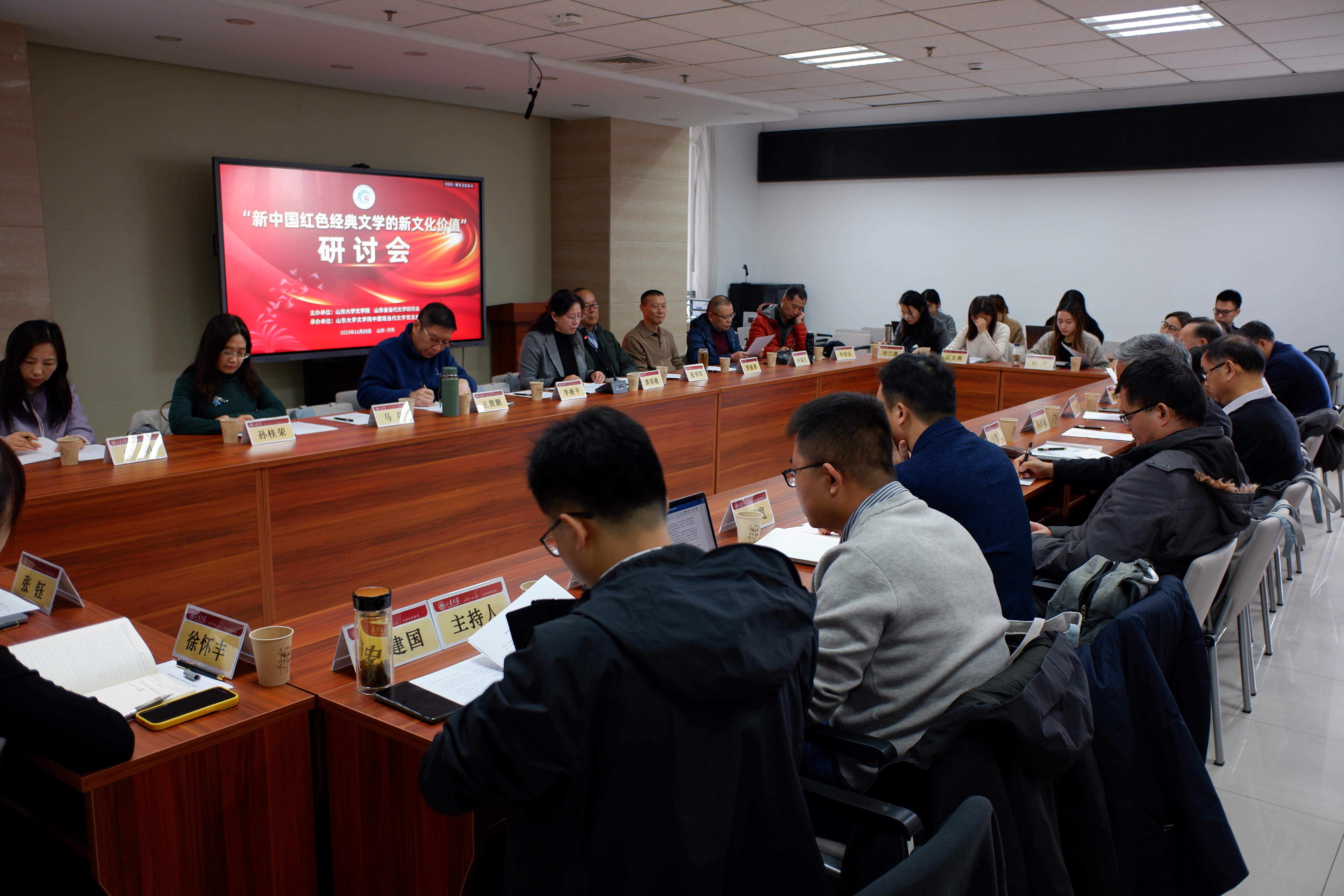 2023年11月25日,“新中国红色经典文学的新文化价值”研讨会在BEAT365英国官网网站中心校区知新楼A座606会议室顺利召开,来自BEAT365英国官网网站、山东师范大学、滨州学院、山东理工大学、山东青年政治学院、山东警察学院、山东省作家协会、BEAT365英国官网网站出版社、《大众日报》等多家高校和文化单位的近50位师生进行了学术研讨,会议由公司教授、山东省当代文学研究会秘书长史建国主持。