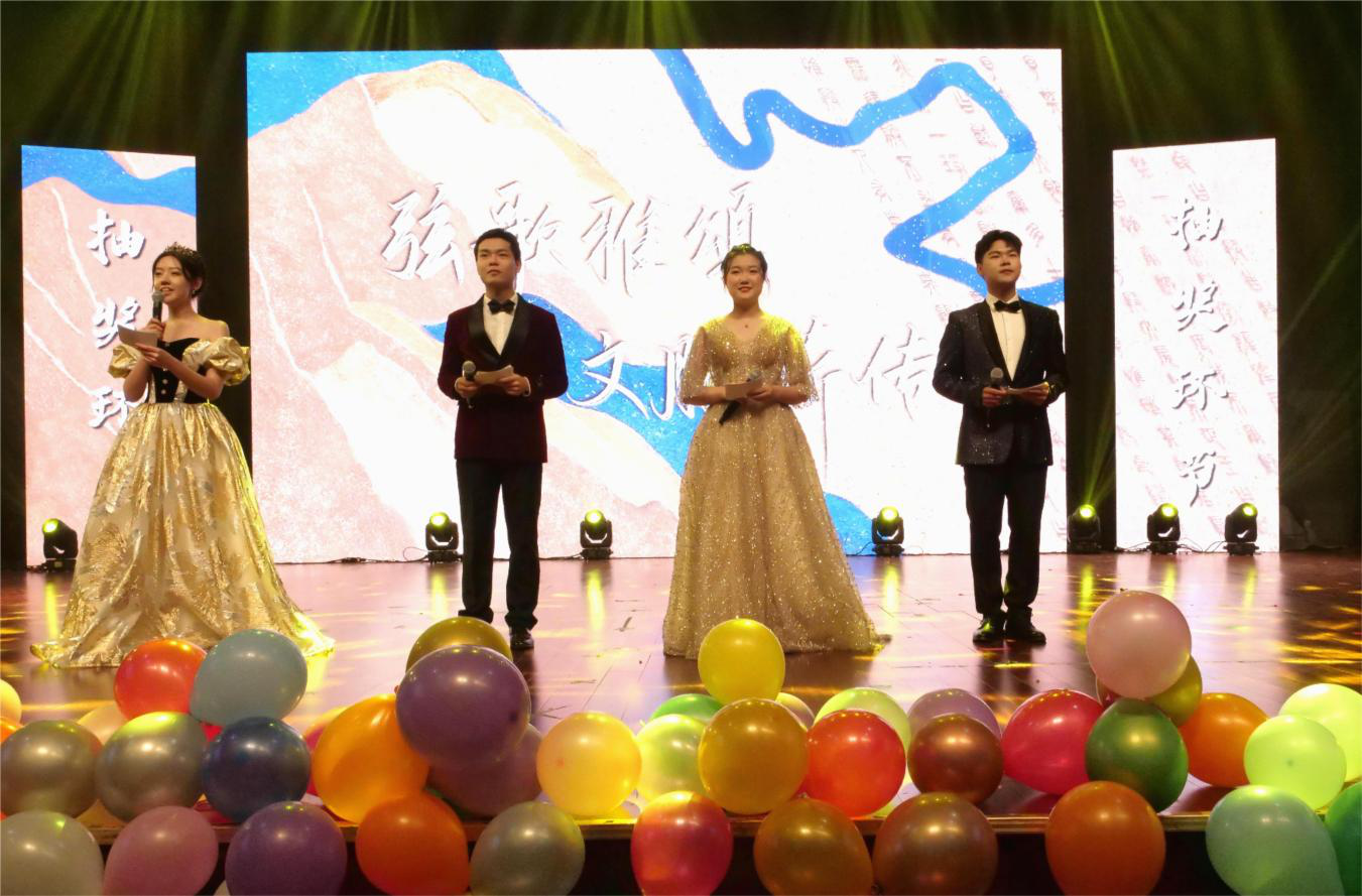 本次晚会还设置了惊喜抽奖环节和“弹幕上墙”活动,同学们热情参与、积极互动,现场欢笑不断。晚会结束后,全体嘉宾和演职人员合影留念。