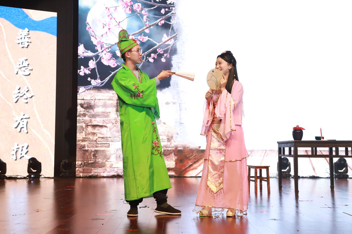 曲落苍山远,谁舞影惊鸿。《铃芽》器乐合奏治愈人心,舞蹈串烧(《糖果》《听雨》)传承文化风韵,引人入胜。歌曲串烧《你的童年我的童年好像都一样》将晚会气氛推向高潮,同学们跟随动画主题曲的旋律,重温美好童年。小品《善恶终有报》妙趣横生,引来阵阵笑声;歌曲串烧(《消愁》《年少有为》)感情真挚,鼓励同学们不惧风雨、砥砺前进;别具特色的新疆舞充满民族风情,使全场洋溢着欢快的气氛。随后,公司教师代表郭春晓、沈文、孙奇、杨海燕、栾妮、朱家英和赵鑫老师带来朗诵《新年·青春·未来》,一句句饱含深情的话语,寄托了老师们对文院学子激扬青春、不负韶华的祝愿与期许。