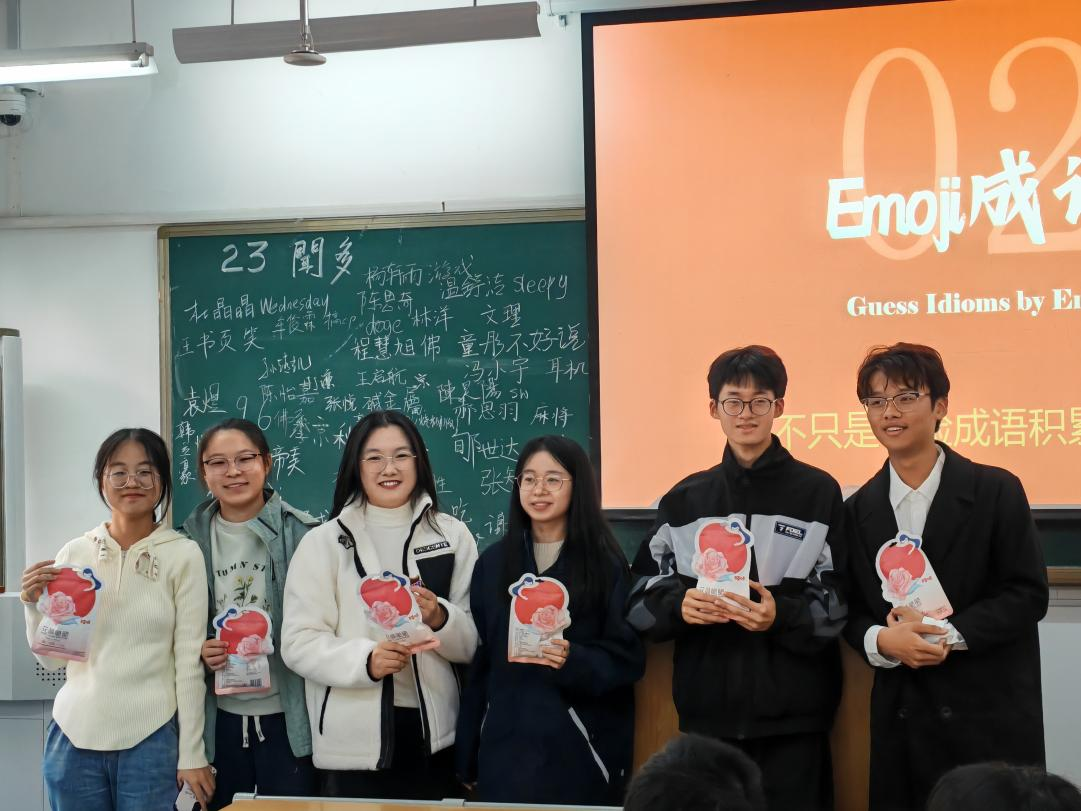 为减轻同学们开学以来在学业课程和员工工作上的压力,各班班委尽可能满足同学需求,设计了一系列有趣新颖的游戏互动环节。各个游戏突出了团队合作、思维训练、文体融合、友好竞争、奖品奖励等特点,调动同学们的积极性,让全班同学共同参与,在一次次问题思考和一阵阵欢笑声中缓解压力,获得属于自己的个人幸福感、集体荣誉感、班级归属感。中文一班“听歌识曲”增强艺术素养,扩展员工认知范围,促进员工综合素质发展;中文二班“你划我猜”强调团队写作,员工在游戏环境中消除陌生感,增进友谊;强基班通过纸牌类游戏,吸引大家兴趣,通过语言和微表情,每个人都聚精会神,投入与心灵交流;闻一多班“表情包猜成语”将当下流行的网络表情包元素与传统成语有机结合,在思考中激发了员工对传统文化的新兴趣,推动传统文化的创新发展。