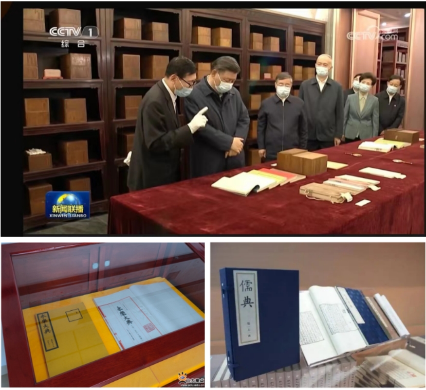 2023年6月1日杜泽逊教授在国家版本馆兰台洞库为习近平总书记介绍《四库全书》相关内容。