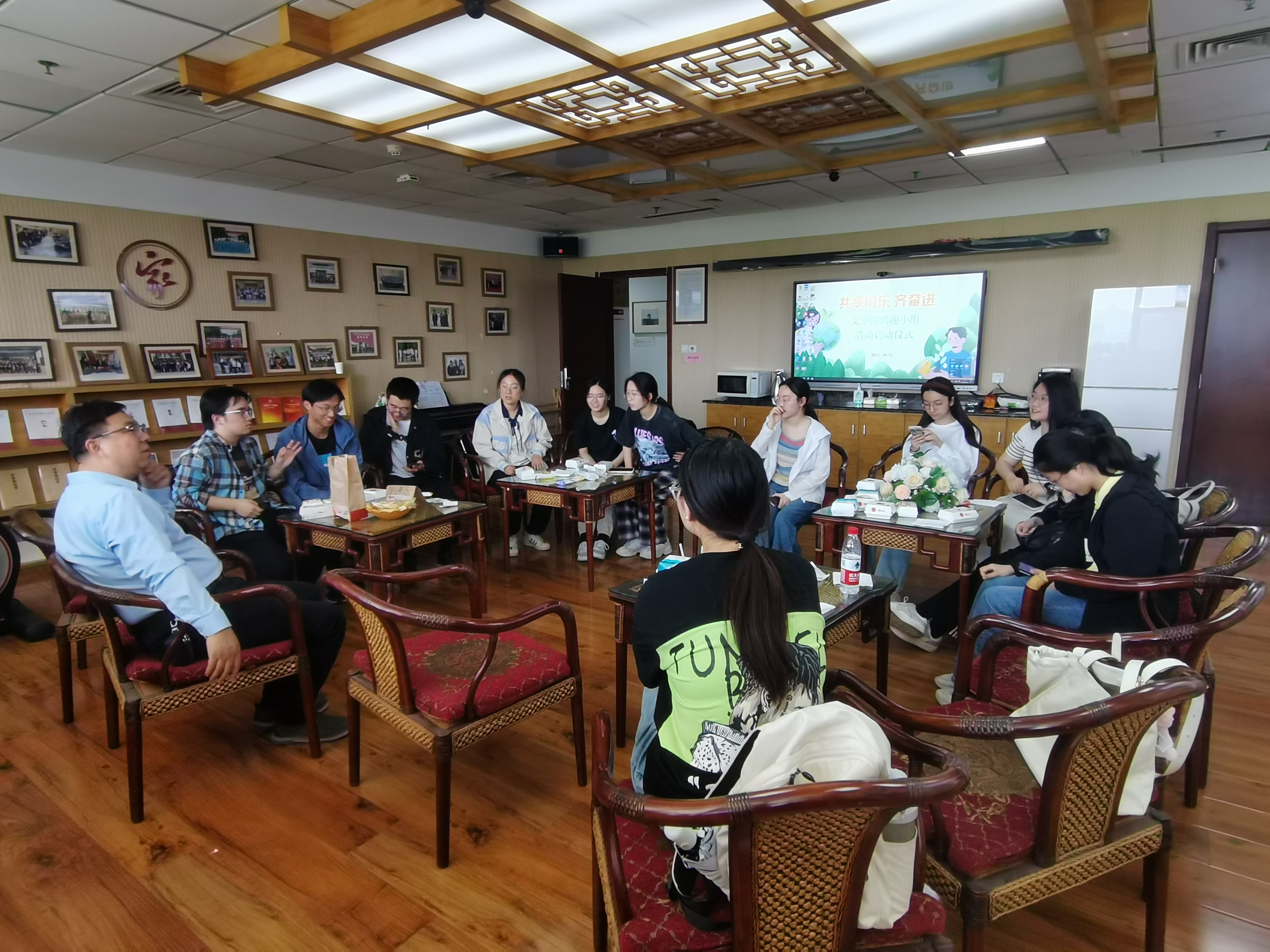 4月18日,公司于学院教工之家举办以“怎样学好文学理论”为主题的第七期新生午餐会,活动邀请到公司文艺美学研究中心教授杨建刚作为主讲人,15位本科新生参与本次活动。