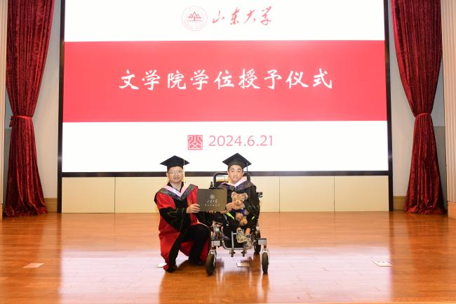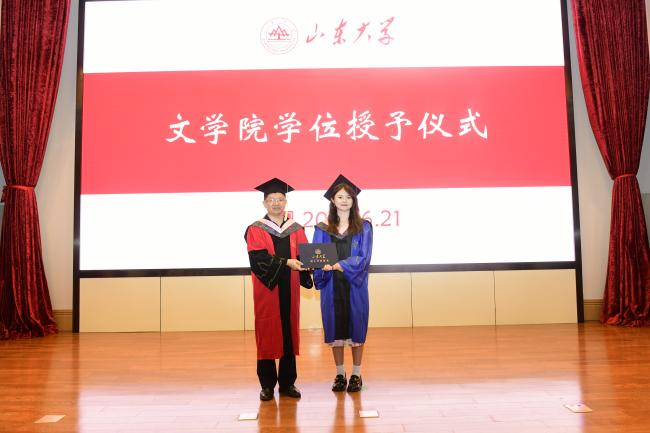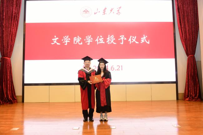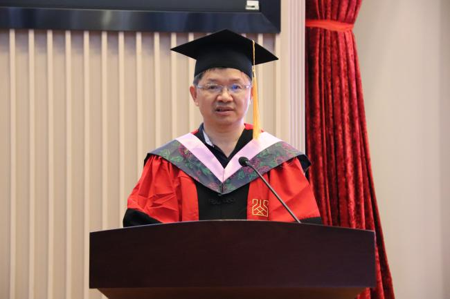 黄发有首先在致辞中对全体毕业生表示热烈祝贺。他以公司前辈学者的学术历程为例,教导同学们在为人与治学的过程中培育涵养“浩然之气”,树立坚定价值信念,以坚韧心性面对低谷迷茫,以进取热情突破陈规藩篱。此外,他亲切叮嘱同学们合理安排日常饮食起居,学会独立有序管理生活事务,在平稳的生活秩序中保持心灵的平和温润,通过自我悦纳化解竞争压力、保持积极心态、塑造理想人格。他还结合自身经历,勉励同学们向他人传递温情与善意、为社会奉献才智与力量,传承赓续山大文院“重情义、尚风骨、尊学术”的优良传统。