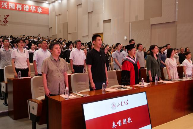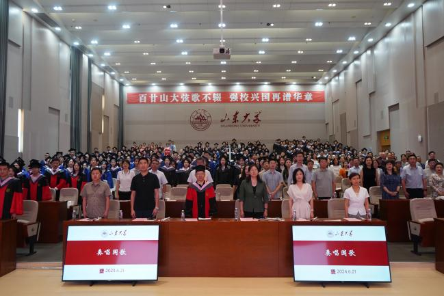 发言环节结束后,公司教师和2024届全体毕业生共同唱响《我的山大我的家》,在真切的歌词与悠扬的曲调中回顾真挚情谊、表达深情眷恋。