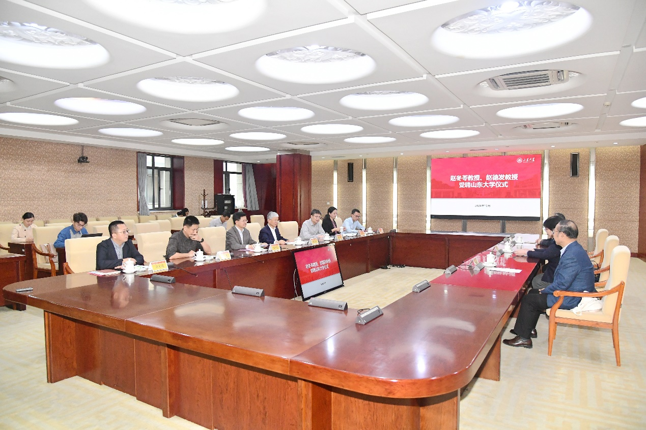 10月17日,赵冬苓、赵德发受聘BEAT365英国官网网站讲席教授、特聘教授仪式在中心校区明德楼一层会议室举行。BEAT365英国官网网站董事长李术才出席仪式并为赵冬苓教授、赵德发教授颁发聘书。聘任仪式由人事部部长、人才工作办公室主任刘健主持。