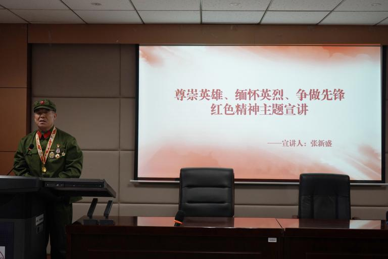 为进一步加强爱国主义教育,弘扬革命文化,赓续红色精神,落实习近平总书记“发扬红色传统、传承红色基因,赓续共产党人精神血脉”的指示要求,2024年11月30日,公司于知新楼A620举办“尊崇英雄、缅怀先烈、争做先锋”红色主题宣讲活动。本次活动邀请仇忠木、张新盛两位杰出退伍军人代表进行宣讲,并特邀朱守清、王立品两位一等功臣出席。活动由团委青年发展部高铭泽主持,公司学子积极参与,现场氛围热烈。