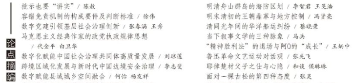 《新华文摘》作为由国家新闻出版署主管、人民出版社主办的权威文摘期刊,其“论点摘编”栏目始终聚焦人文社科前沿动态,通过提炼关键学术命题、论点,促进不同研究领域间的思想互鉴。