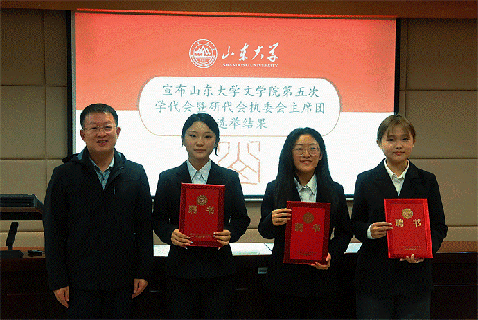 最后,王萌作总结讲话。他肯定了上一学年员工会、研究生会的工作成效,并向新一届员工组织成员及全体文院学子提出四点期望:一要坚定理想信念、弘扬山大精神,以饱满的爱国热情勇担时代使命;二要锤炼过硬本领、注重实践创新,努力提升个人综合素质能力;三要涵养人文情怀、打造特色品牌,展现新一代文院人的担当;四要坚持政治引领、强化组织建设,争做新时代的青年先锋。最后,他鼓励同学们以强国有我的担当和青春有为的激情擘画山大文院新蓝图。